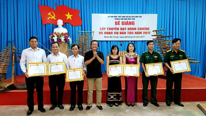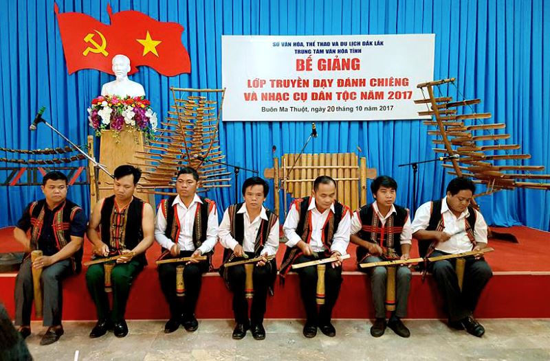 Trung tâm Văn hóa tỉnh vừa tổ chức Lễ Bế giảng Lớp Truyền dạy đánh chiêng và nhạc cụ dân tộc năm 2017 cho 62 học viên làm công tác văn hóa cơ sở trên địa bàn Đắk Lắk.