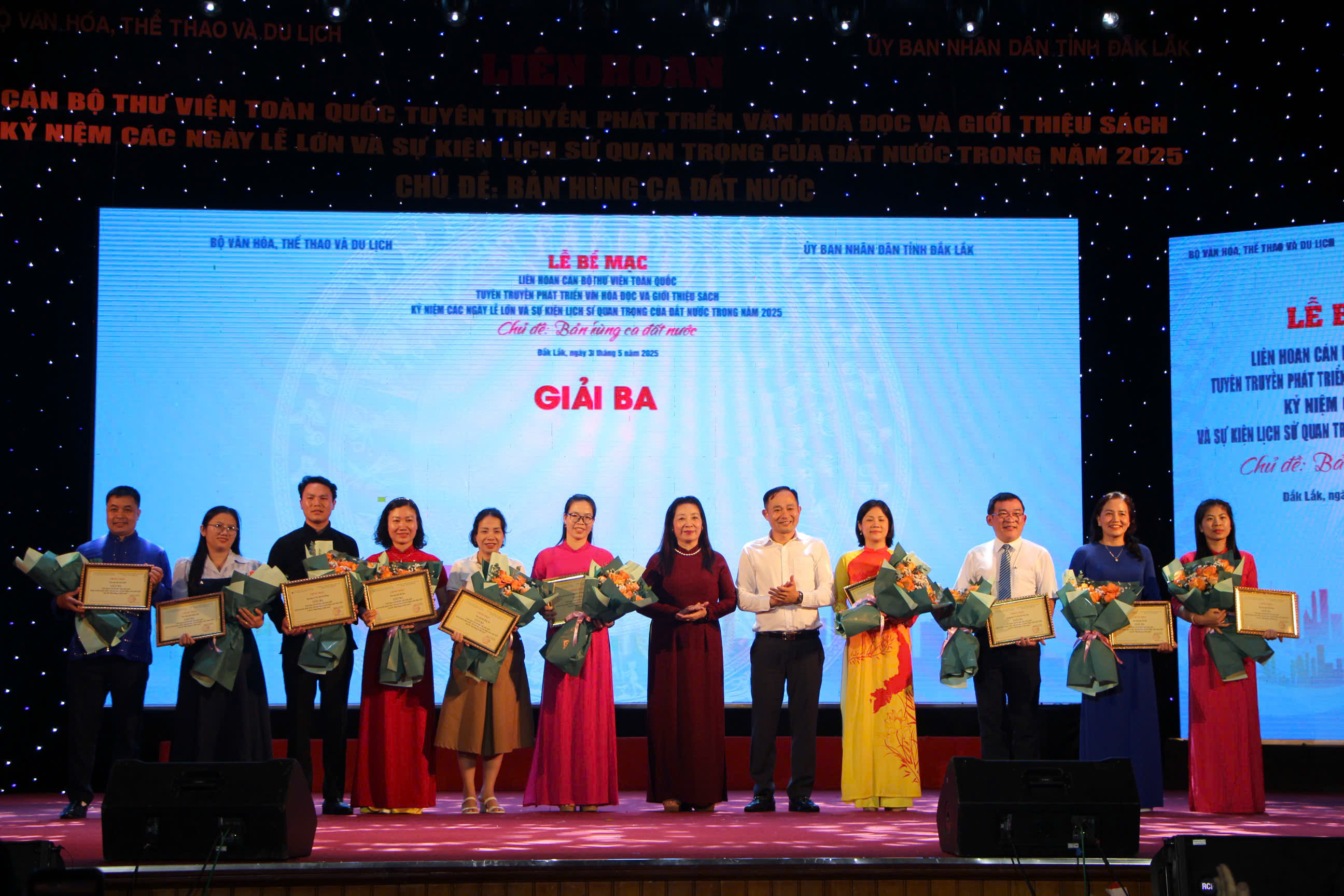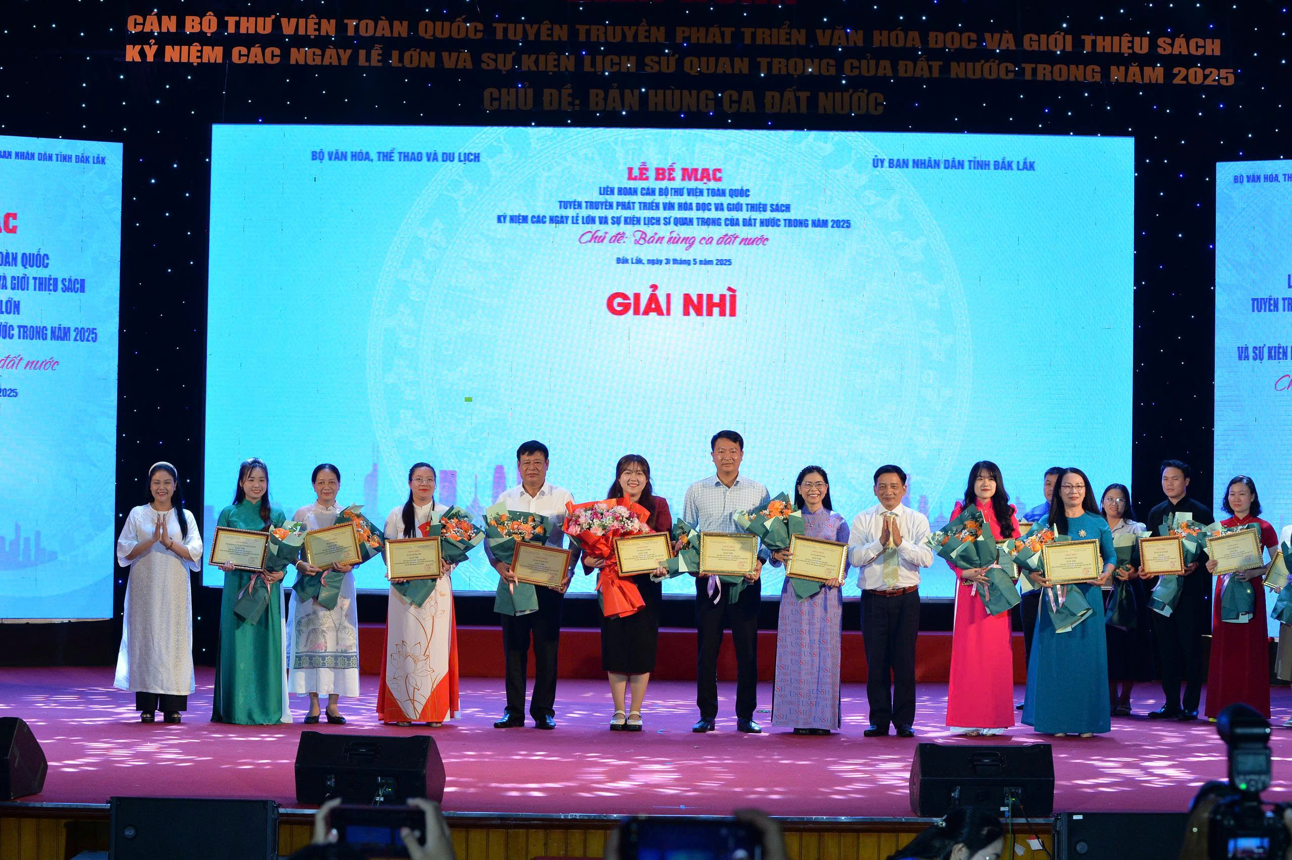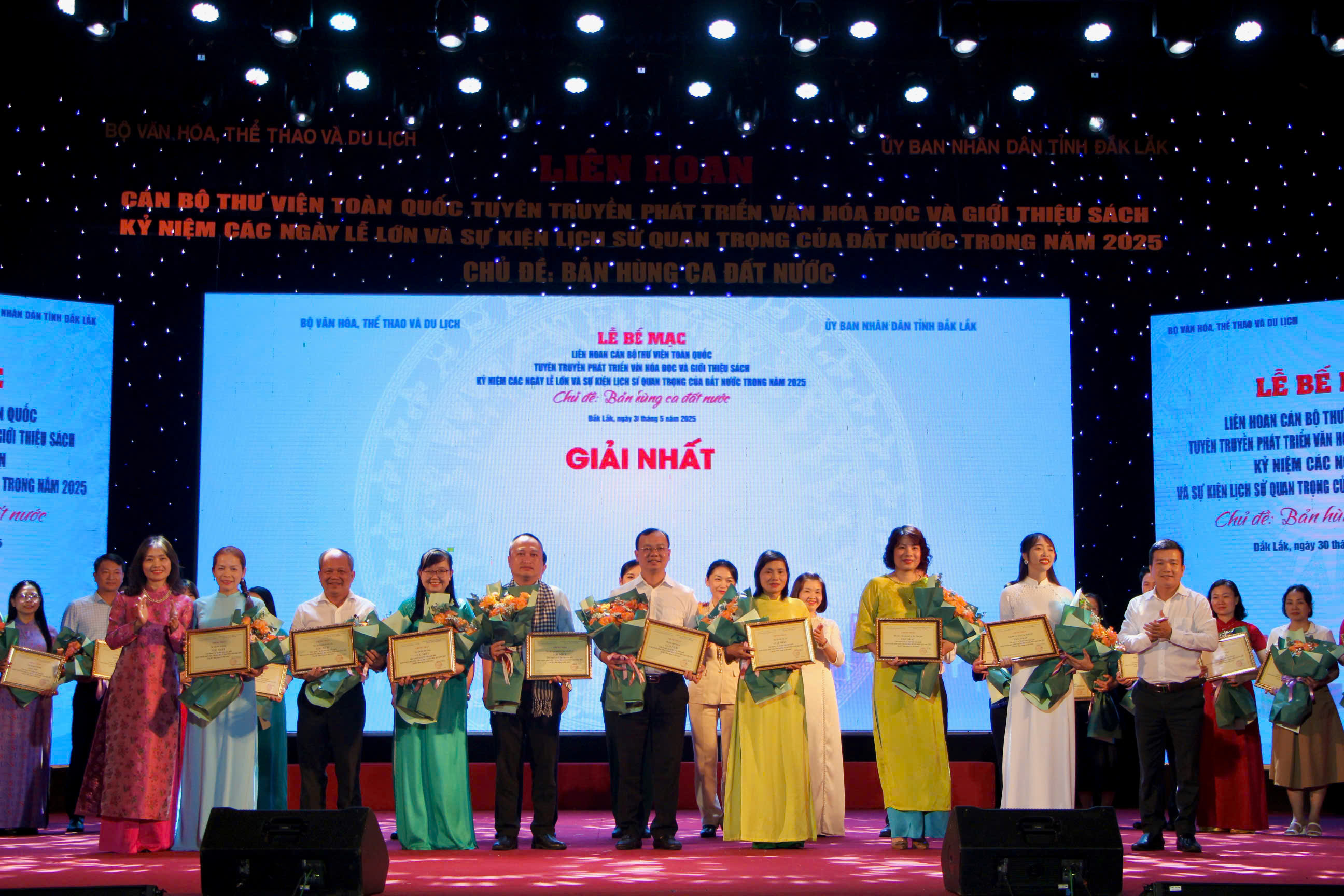 Sau 5 ngày diễn ra sôi nổi (từ 26/5 - 30/5/2025), Liên hoan Cán bộ thư viện toàn quốc tuyên truyền phát triển văn hóa đọc và giới thiệu sách năm 2025 - Kỷ niệm các ngày Lễ lớn và sự kiện lịch sử quan trọng của đất nước trong năm 2025 do Cục Văn hóa cơ sở, Gia đình và Thư viện Bộ Văn hóa, Thể thao và Du lịch phối hợp với Ủy ban nhân dân tỉnh Đắk Lắk tổ chức đã bế mạc vào chiều 30/5 tại Trung tâm Văn hóa - Du lịch tỉnh Đắk Lắk.