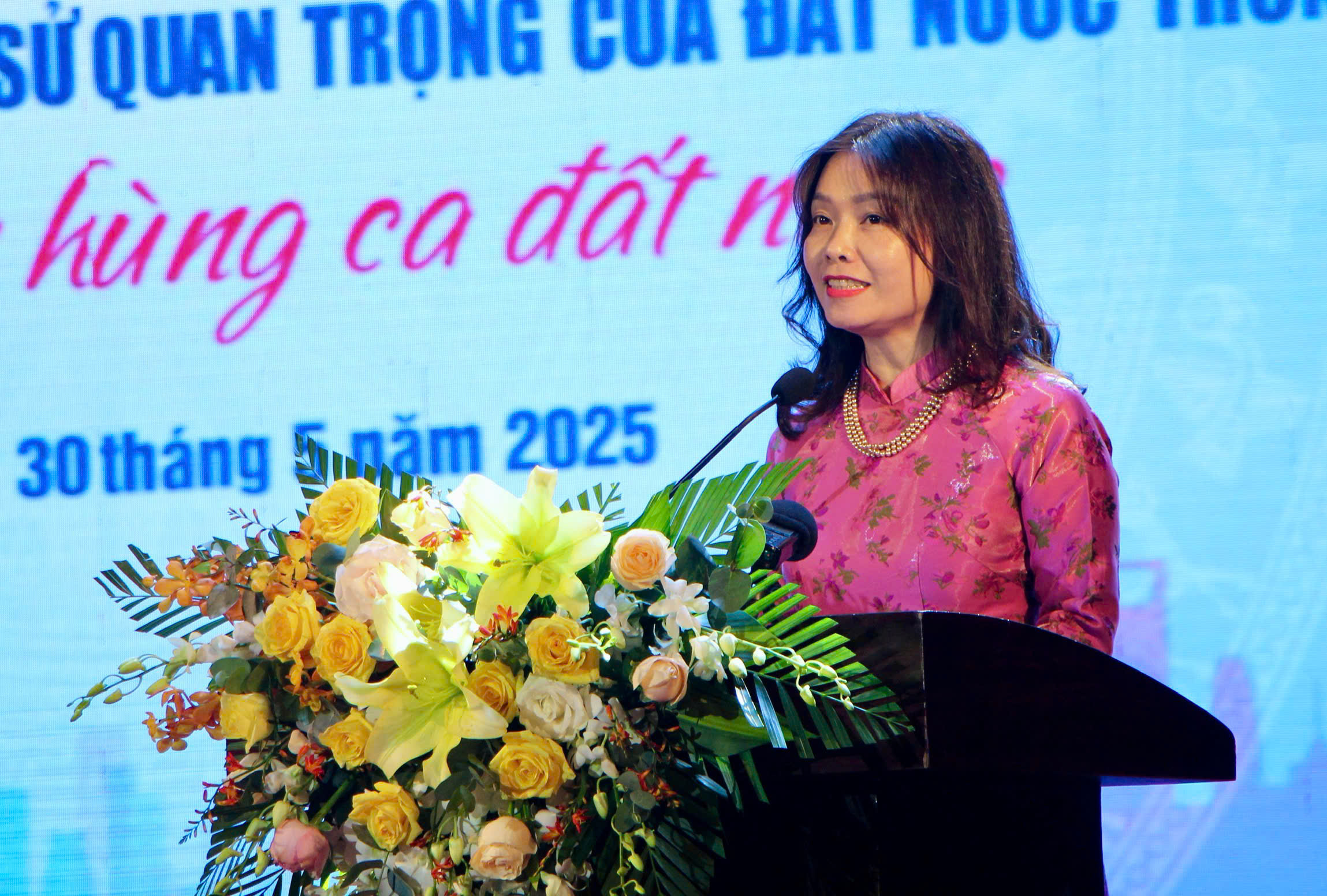 Bà Trần Thị Phương Lan, Vụ trưởng Vụ Văn hóa Văn nghệ, Ban Tuyên giáo và Dân vận Trung ương, Trưởng ban Giám khảo phát biểu