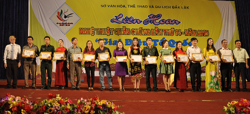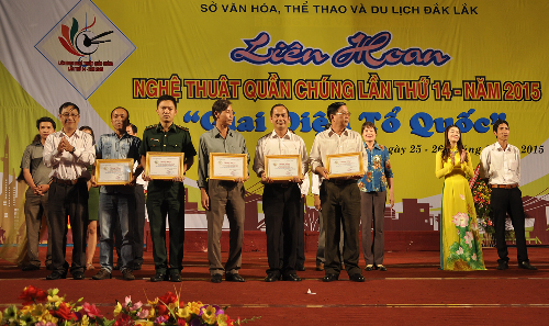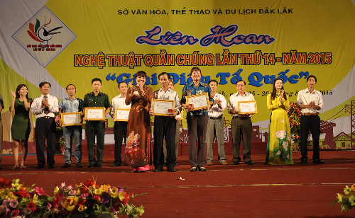 Tối 26 tháng 8, tại Trung tâm Văn hóa tỉnh, Sở Văn hóa, Thể thao và Du lịch đã tổ chức Công diễn những tiết mục xuất sắc và Bế mạc Liên hoan nghệ thuật quần chúng tỉnh Đắk Lắk lần thứ 14 năm 2015 với chủ đề “ Giai điệu Tổ quốc”. Liên hoan nghệ thuật quần chúng tỉnh Đắk Lắk lần thứ 14 năm 2015 đã thu hút hơn 500 cán bộ, diễn viên thuộc 14 đơn vị huyện, thị xã, thành phố và Bộ đội Biên phòng tỉnh.