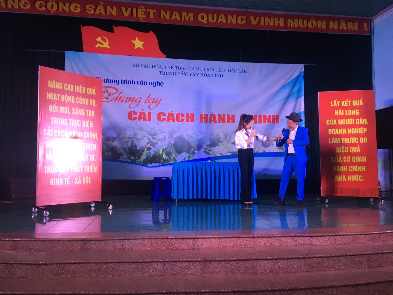 Từ ngày 25/10 đến 17/11/2023, Đội Tuyên truyền lưu động thuộc Trung tâm Văn hóa tỉnh biểu diễn Chương trình tuyên truyền Cải cách hành chính tỉnh Đắk Lắk năm 2023, với chủ đề “Nâng cao hiệu qủa hoạt động công vụ. Đổi mới, sáng tạo trong thực hiện cải cách hành chính, đẩy mạnh cải thiện môi