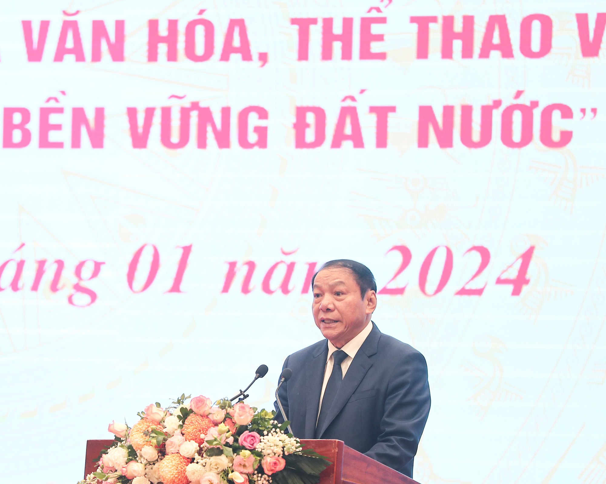 Năm 2024, ngành văn hóa, thể thao và du lịch cả nước tiếp tục triển khai hiệu quả 6 nhóm nhiệm vụ và 4 nhóm giải pháp xây dựng, giữ gìn và phát huy những giá trị đặc sắc của nền văn hóa Việt Nam tiên tiến, đậm đà bản sắc dân tộc đã được Tổng Bí thư Nguyễn Phú Trọng chỉ đạo tại Hội nghị văn hóa toàn quốc năm 2021. Nhiệm vụ trọng tâm của toàn ngành, tiếp tục hoàn thiện hệ thống pháp luật theo đề án hoàn thiện hệ thống pháp luật giai đoạn 2021 - 2026 đã phê duyệt; thực hiện các mục tiêu, nhiệm vụ được giao tại các chiến lược, quy hoạch phát triển ngành đã được Thủ tướng Chính phủ phê duyệt; xây dựng và hoàn thiện các đề án trong chương trình công tác của Chính phủ, Thủ tướng Chính phủ bảo đảm tiến độ, chất lượng; chủ động tăng cường, mở rộng các hoạt động giao lưu, hợp tác quốc tế trong các lĩnh vực của ngành; ký kết, triển khai hiệu quả các thỏa thuận hợp tác quốc tế về văn hóa, thể thao và du lịch theo chương trình công tác năm...