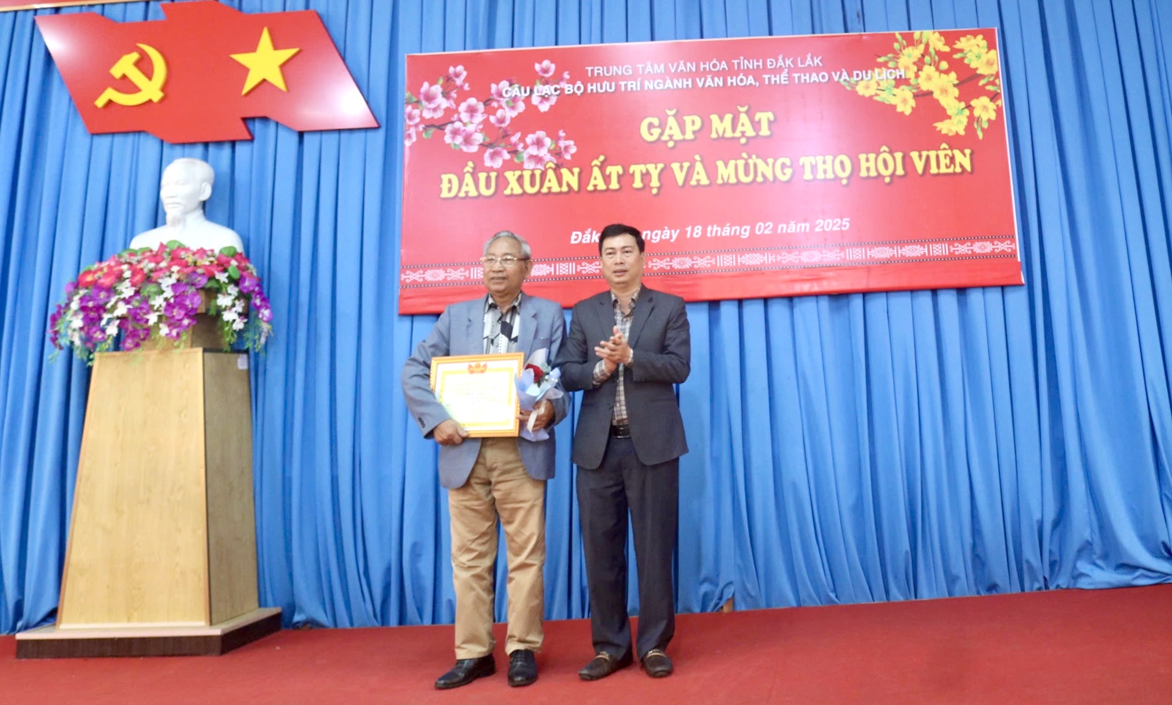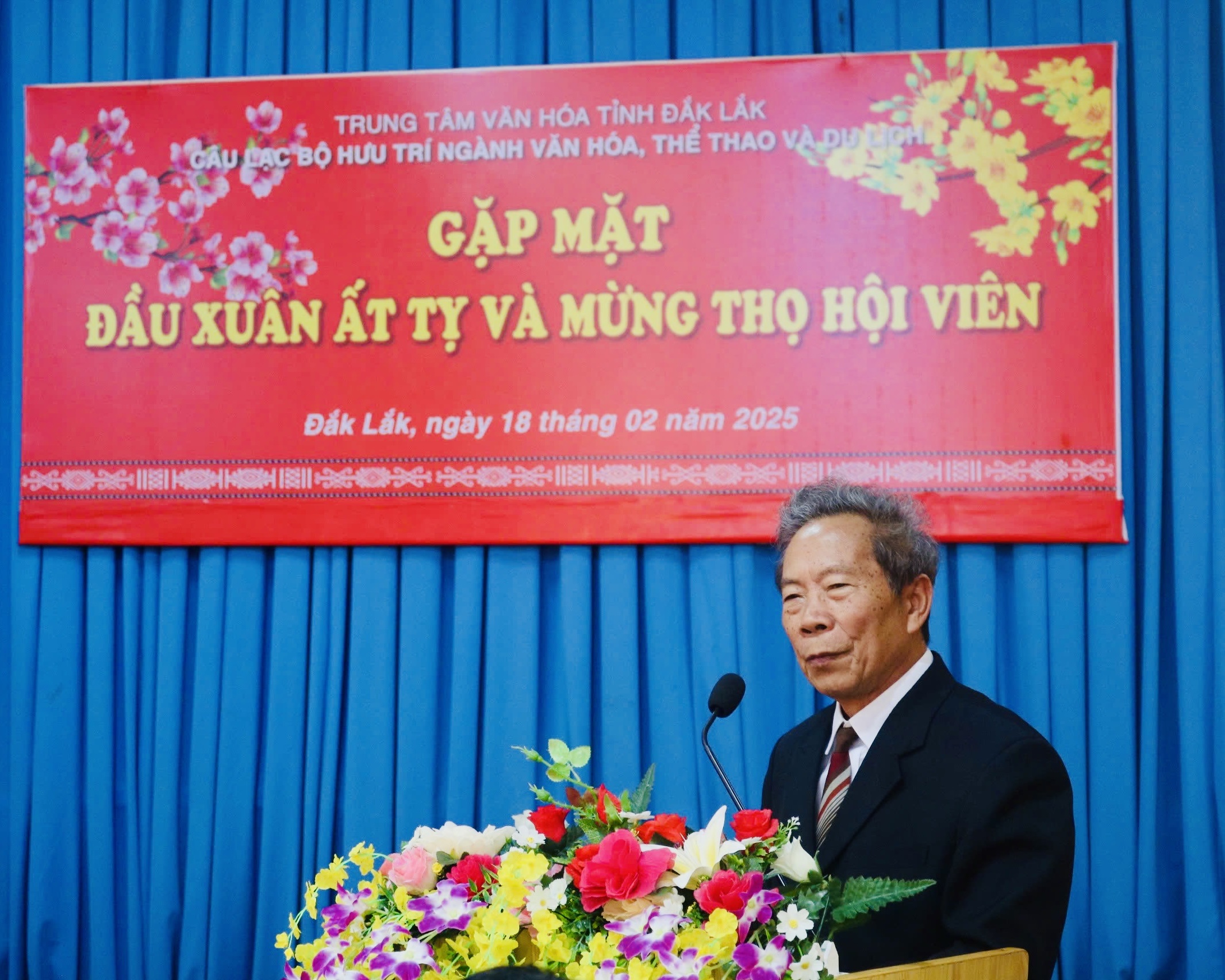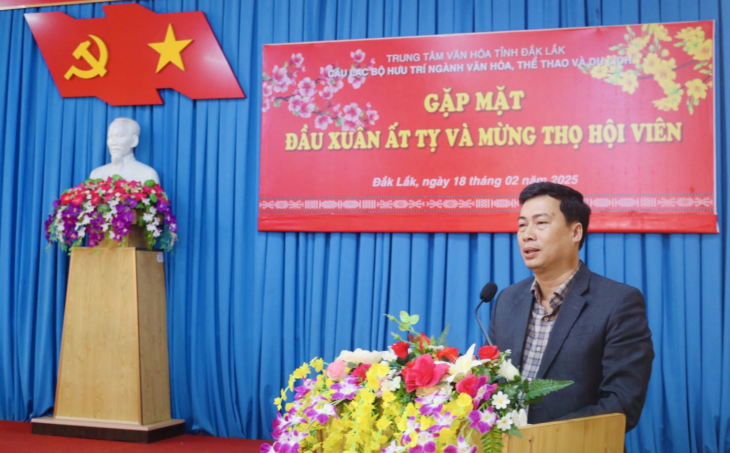Sáng ngày 18/02/2025, Câu lạc bộ Hưu trí ngành Văn hóa, Thể thao và Du lịch tỉnh Đắk Lắk thuộc Trung tâm Văn hóa tỉnh gặp mặt đầu xuân Ất Tỵ và mừng Thọ Hội viên. Tham dự chương trình có ông Trần Hồng Tiến, Tỉnh ủy viên, Giám đốc Sở Văn hóa, Thể thao và Du lịch; bà Trương Thị Ánh, Giám đốc Trung tâm Văn hóa tỉnh cùng các thành viên trong Ban Giám đốc của Trung tâm.