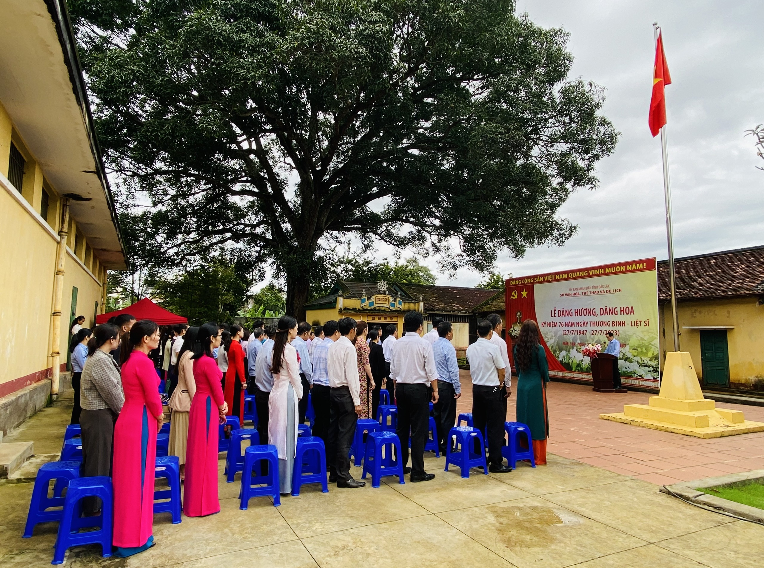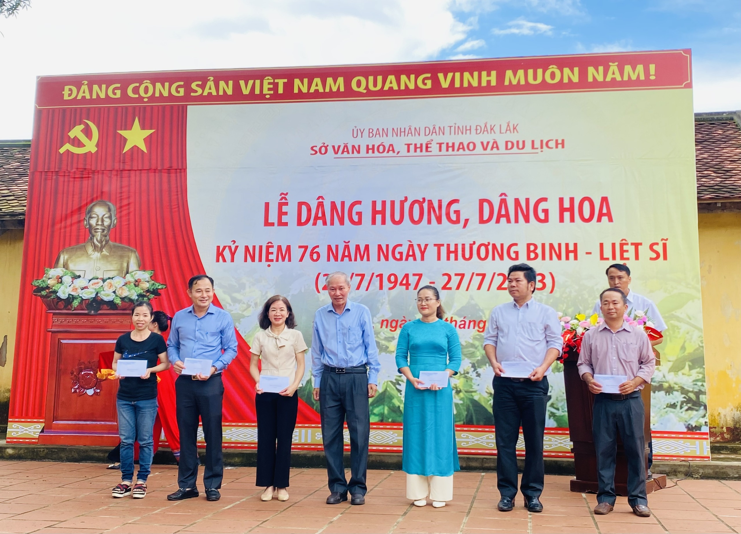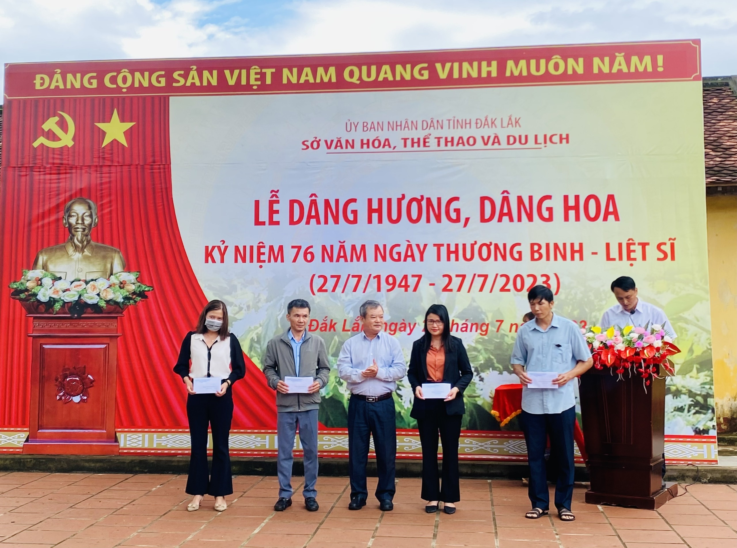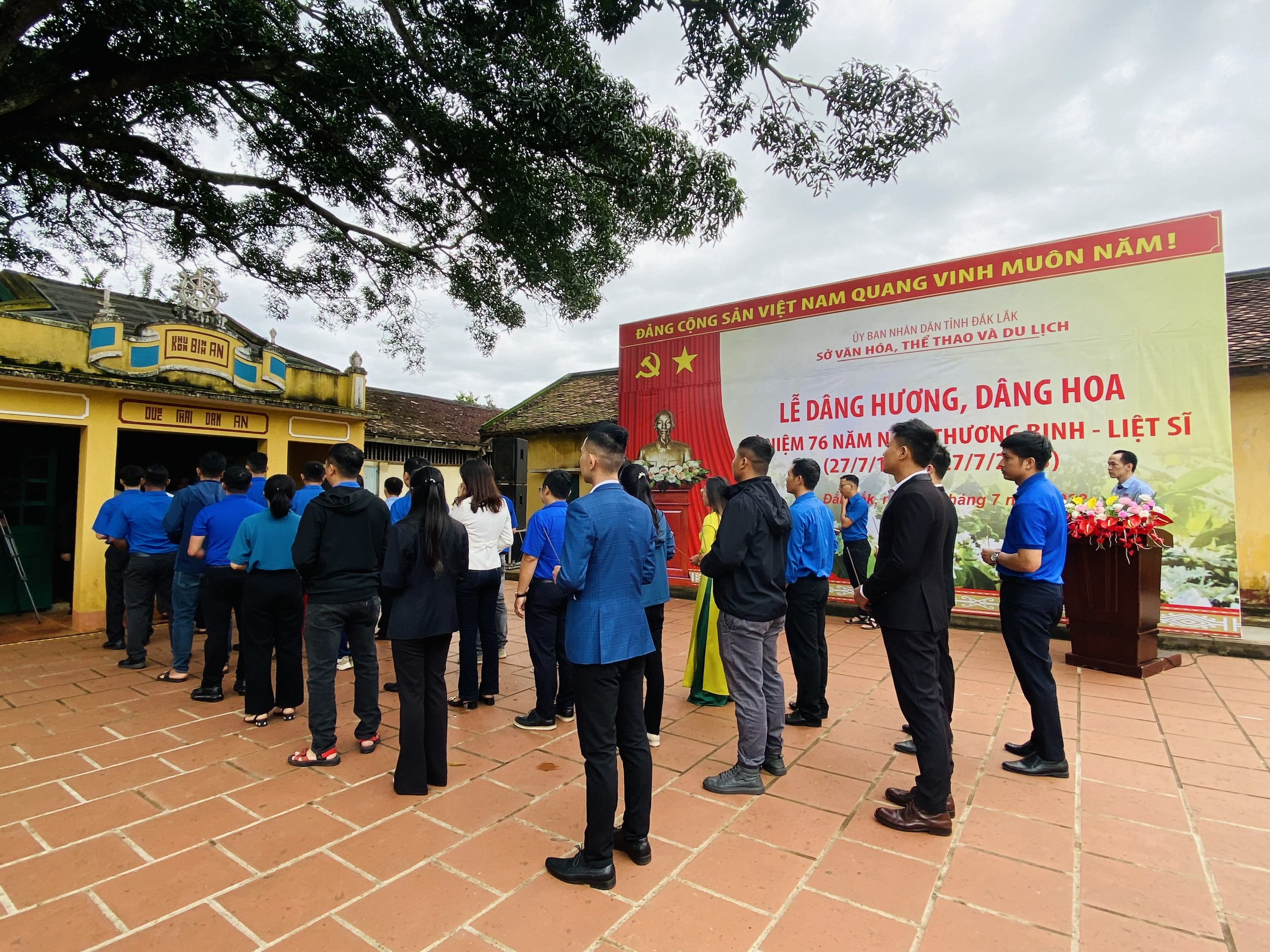 Sáng 26/7, tại Di tích lịch sử quốc gia đặc biệt Nhà đày Buôn Ma Thuột, số 27 đường Phạm Hồng Thái, phường Tự An, thành phố Buôn Ma Thuột, Chi đoàn Trung tâm Văn hóa tỉnh cùng cán bộ, công chức, viên chức, người lao động toàn ngành do đồng chí Thái Hồng Hà, Tỉnh ủy viên, Bí thư Đảng ủy, Giám đốc Sở Văn hóa, Thể thao và Du lịch làm Trưởng đoàn đã dâng hương, dâng hoa kỷ niệm 76 năm ngày Thương binh - Liệt sĩ (27/7/1947 - 27/7/2023).