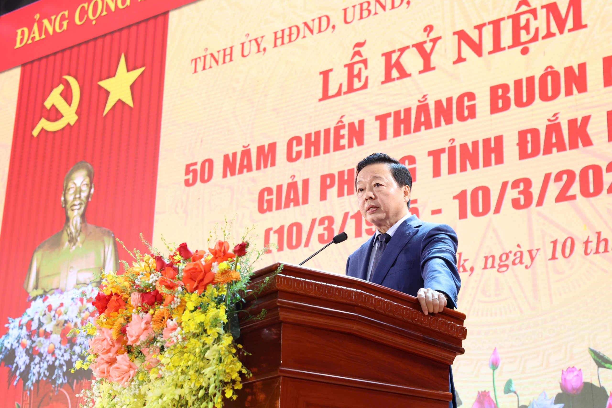 Phó Thủ tướng Trần Hồng Hà kêu gọi Đảng bộ, chính quyền và nhân dân Đắk Lắk tiếp tục phát huy tinh thần Chiến thắng Buôn Ma Thuột, hướng tới phát triển bền vững và thịnh vượng trong kỷ nguyên mới, giữ gìn và phát huy các giá trị văn hóa và thiên nhiên của vùng Tây Nguyên.