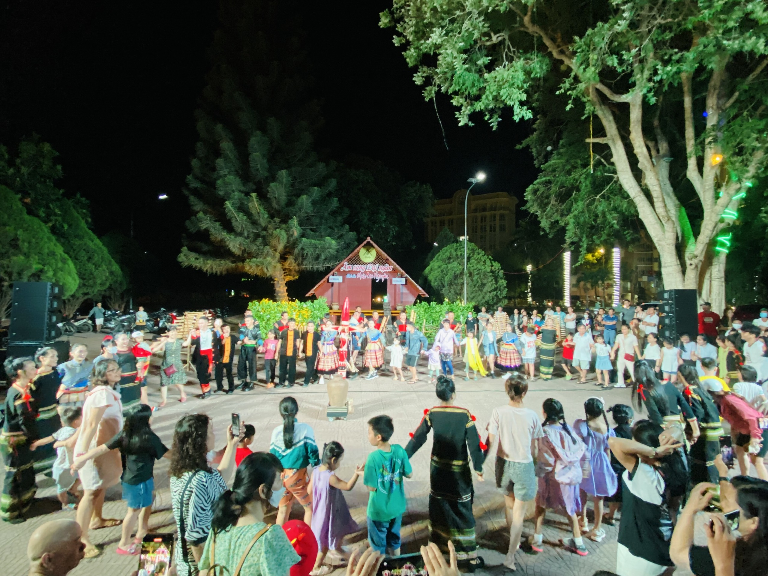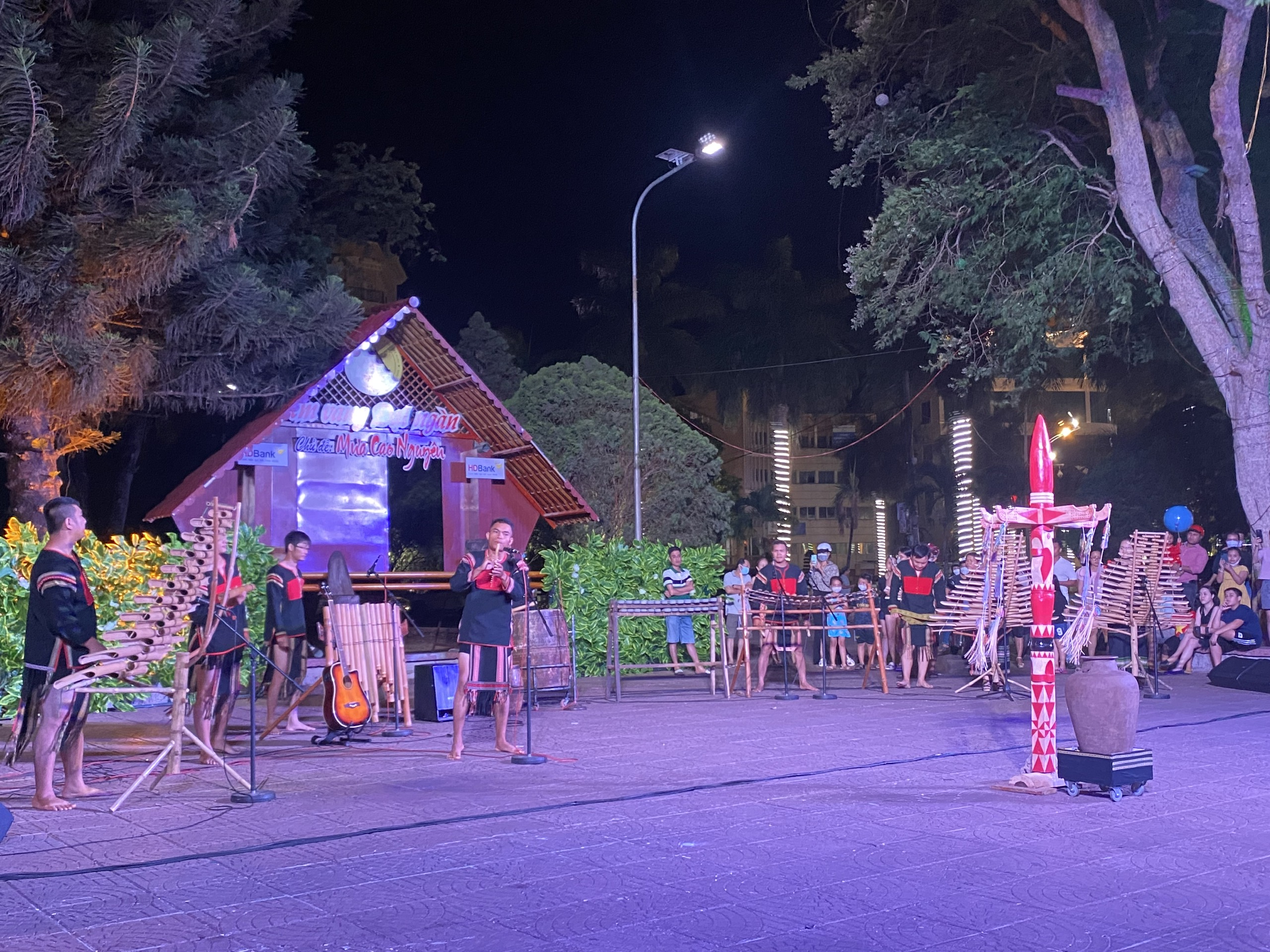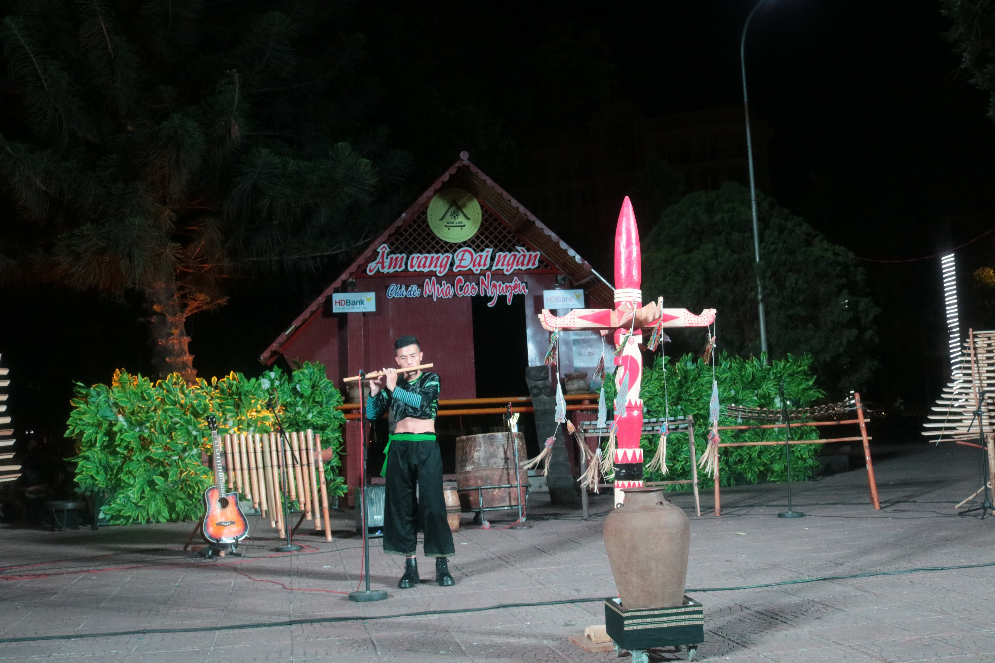 Tại đêm diễn, khán giả được giới thiệu và trải nghiệm chơi Sáo vỗ, một nhạc cụ độc đáo do NSƯT Vũ Lân sáng chế; được nối vòng xoang trong tiếng Cồng chiêng, hòa tấu nhạc cụ dân tộc rộn rã với bài hát “Tiếng chim Prô Tôk gọi mùa”. Chương trình biểu diễn văn hóa Cồng chiêng “Âm vang đại ngàn” phục vụ Nhân dân và du khách được tổ chức định kỳ 01 tháng 02 lần, vào lúc 19h30’ tối thứ Bảy tuần thứ 2 và tuần cuối của tháng. Chương trình là sự kết hợp giữa biểu diễn Cồng chiêng, các tiết mục dân ca, dân vũ, hòa tấu nhạc cụ, ca khúc dân gian... góp phần bảo tồn và quảng bá Không gian văn hóa cồng chiêng Tây Nguyên, đáp ứng nhu cầu hưởng thụ văn hóa của Nhân dân và du khách./.