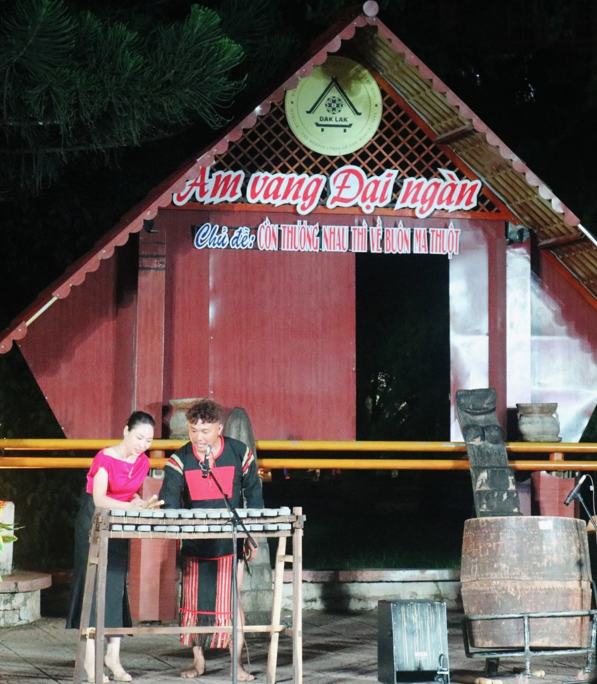 Với nội dung ca ngợi tình yêu quê hương, hình ảnh con người Đắk Lắk, giá trị lao động sản xuất, sự gắn kết cộng đồng, nét văn hóa đặc trưng của các dân tộc Tây Nguyên, các tiết mục do nghệ sĩ, diễn viên của Đoàn Ca múa Dân tộc tỉnh và nhóm nghệ nhân của Câu lạc bộ cồng chiêng buôn Treng, xã Ea H’Leo, huyện Ea H’leo biểu diễn đã thu hút đông đảo du khách trong và ngoài tỉnh. Một số tiết mục đặc sắc như: Tấu chiêng A rap và múa xoang, bài: A Yong Thanh Long (ca ngợi chàng Thanh Long khỏe mạnh), bài: Ơ ADoi Net H’Ning Đời (Nhớ người em gái tên H’ Nét); hoà tấu Nhạc cụ dân tộc: Vũ khúc hạt mưa…Tại điêm diễn, khán giả còn được giới thiệu và trải nghiệm đánh đàn đá cùng các diễn viên, nghệ sỹ.