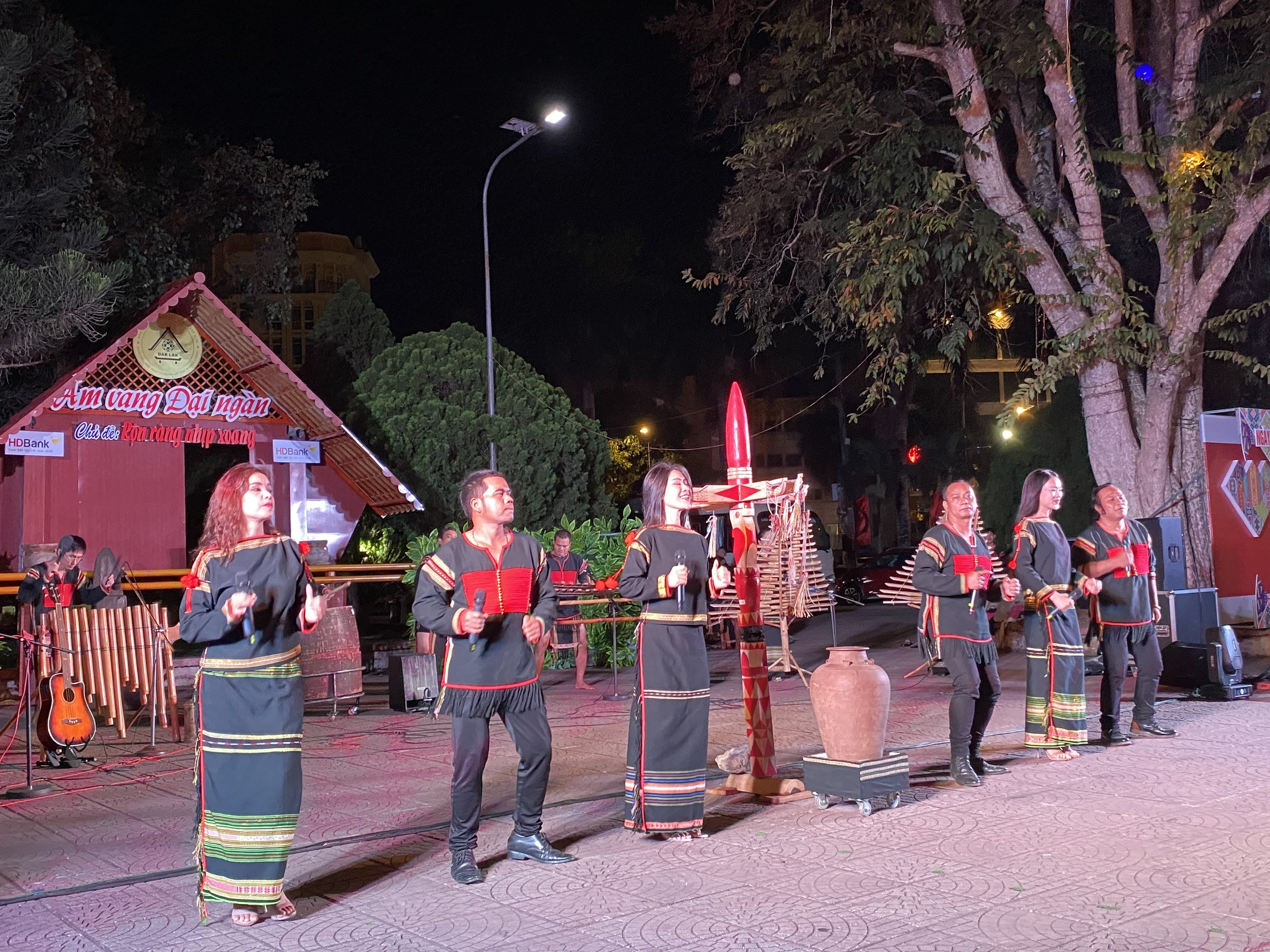Chương trình biểu diễn Văn hóa Cồng chiêng “Âm vang đại ngàn” phục vụ Nhân dân và du khách được tổ chức định kỳ 01 tháng 02 lần, vào lúc 19h30’ tối thứ Bảy tuần thứ 2 và tuần cuối hàng tháng. Chương trình là sự kết hợp giữa biểu diễn Cồng chiêng, các tiết mục dân ca, dân vũ, hòa tấu nhạc cụ, ca khúc dân gian... góp phần bảo tồn và quảng bá Không gian Văn hóa Cồng chiêng Tây Nguyên, tạo nên điểm văn hóa - du lịch cuối tuần thu hút và đáp ứng nhu cầu hưởng thụ văn hóa của Nhân dân và du khách./.