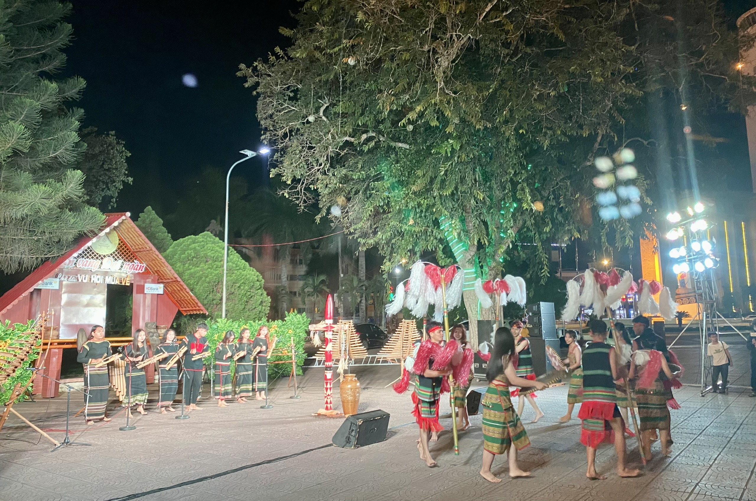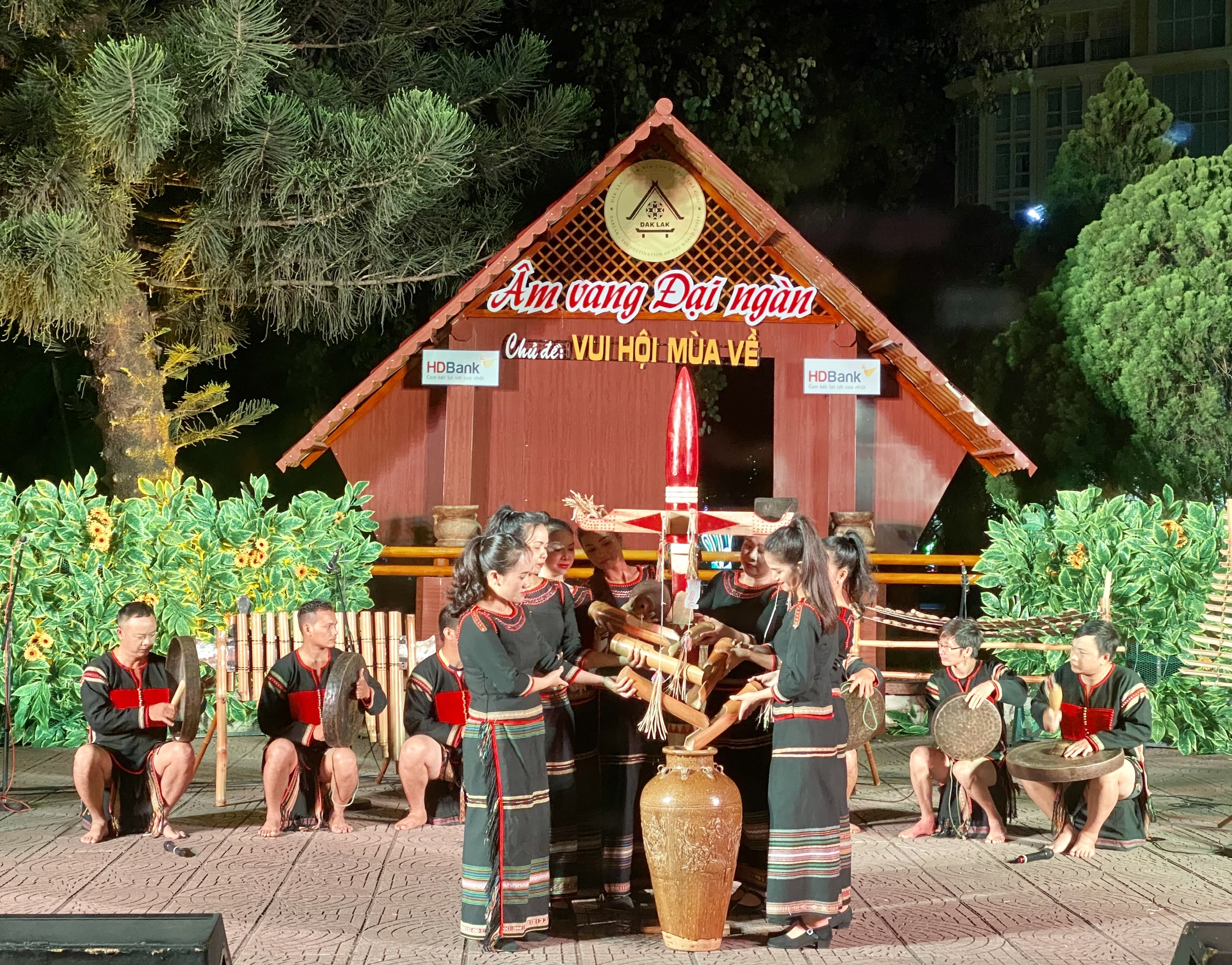 Chương trình gồm các tiết mục đặc sắc do các nghệ sĩ, diễn viên của Đoàn Ca múa Dân tộc tỉnh, Trung tâm Văn hóa tỉnh và sinh viên Trường Đại học Tây Nguyên biểu diễn. Các tiết mục mang đậm bản sắc văn hóa các dân tộc Tây Nguyên, ca ngợi giá trị lao động sản xuất, tình yêu quê hương đất nước, sự gắn kết cộng đồng như: Diễn tấu chiêng k’ram “Vào mùa”, Hòa tấu sáo vỗ “Làng buôn vào hội”, Diễn tấu chiêng Ba Na “Hội tụ”…