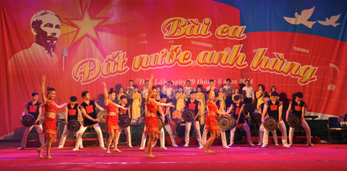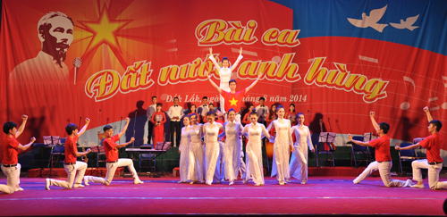 Tối 29/8, tại Trung tâm Văn hóa tỉnh đã diễn ra Chương trình Ca múa nhạc hoành tráng với chủ đề: “Bài ca đất nước anh hùng” chào mừng kỷ niệm 69 năm Cách mạng Tháng Tám và Quốc khánh nước Cộng hòa xã hội chủ nghĩa Việt Nam (2/9/1945 – 2/9/2014).