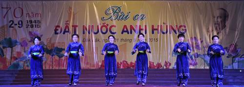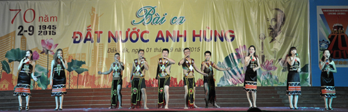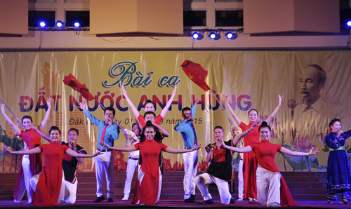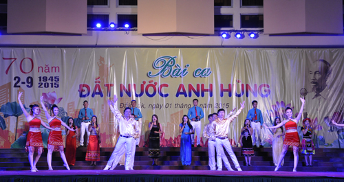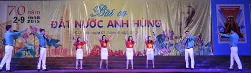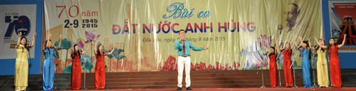 Tối 01/9, tại Trung tâm Văn hóa tỉnh đã diễn ra Chương trình Ca múa nhạc hoành tráng với chủ đề: “Bài ca đất nước Anh hùng” chào mừng kỷ niệm 70 năm Cách mạng Tháng Tám và Quốc khánh nước Cộng hòa xã hội chủ nghĩa Việt Nam (2/9/1945 – 2/9/2015).