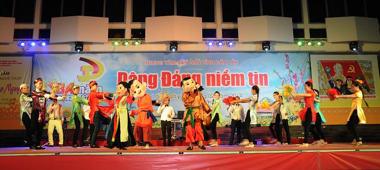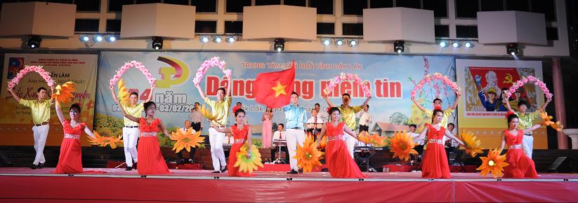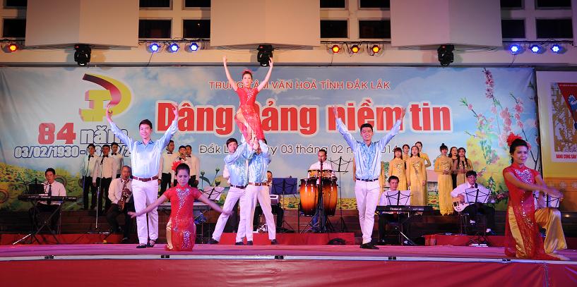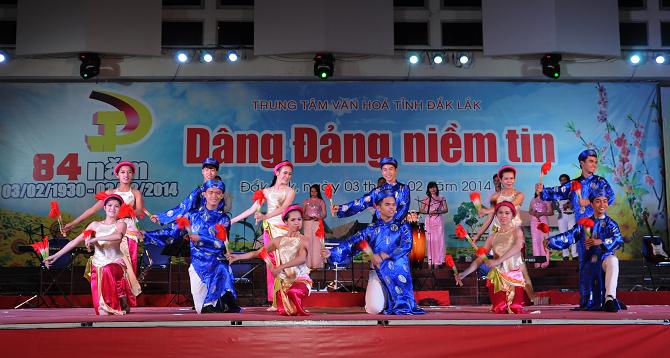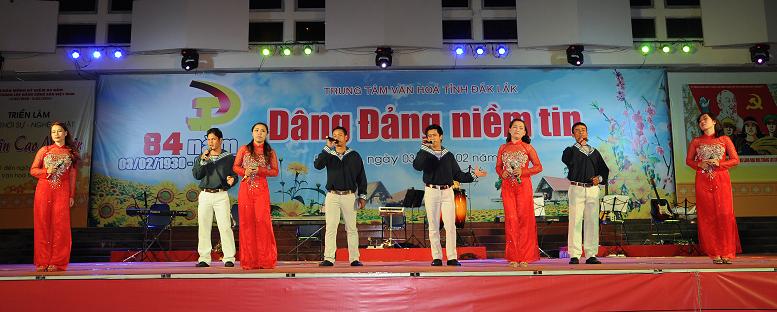 Trung tâm Văn hóa tỉnh vừa tổ chức Chương trình Ca múa nhạc với chủ đề ”Dâng Đảng niềm tin" chào mừng kỷ niệm 84 năm Ngày thành lập Đảng Cộng sản Việt Nam (03/02/1930 – 03/02/2014). Xuyên suốt chương trình là những bài ca, điệu múa ca ngợi Đảng quang vinh, Bác Hồ vĩ đại, tình yêu quê hương đất nước, Tây nguyên giàu đẹp… Chương trình đã thu hút được đông đảo khán giả đến xem và cổ vũ.