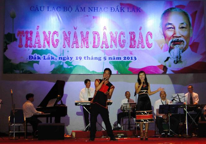 Tối 19/5, Trung tâm Văn hóa tỉnh đã tổ chức Chương trình Ca múa nhạc với chủ đề “Tháng năm dâng Bác” chào mừng kỷ niệm 123 năm Ngày sinh Chủ tịch Hồ Chí Minh (19/5/1890 – 19/5/2013). Chương trình doCâu lạc bộ Âm nhạc Đắk Lắk dàn dựng và thực hiện. Đây là chương trình ra mắt của Câu lạc bộ.