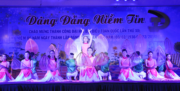 Thiết thực chào mừng Thành công Đại hội đại biểu toàn quốc lần thứ XII của Đảng và chào mừng kỷ niệm 86 năm Ngày thành lập Đảng Cộng sản Việt Nam (03/02/1930 – 03/02/2016), Trung tâm Văn hóa tỉnh vừa tổ chức Chương trình nghệ thuật hoành tráng với chủ đề “Dâng Đảng niềm tin".