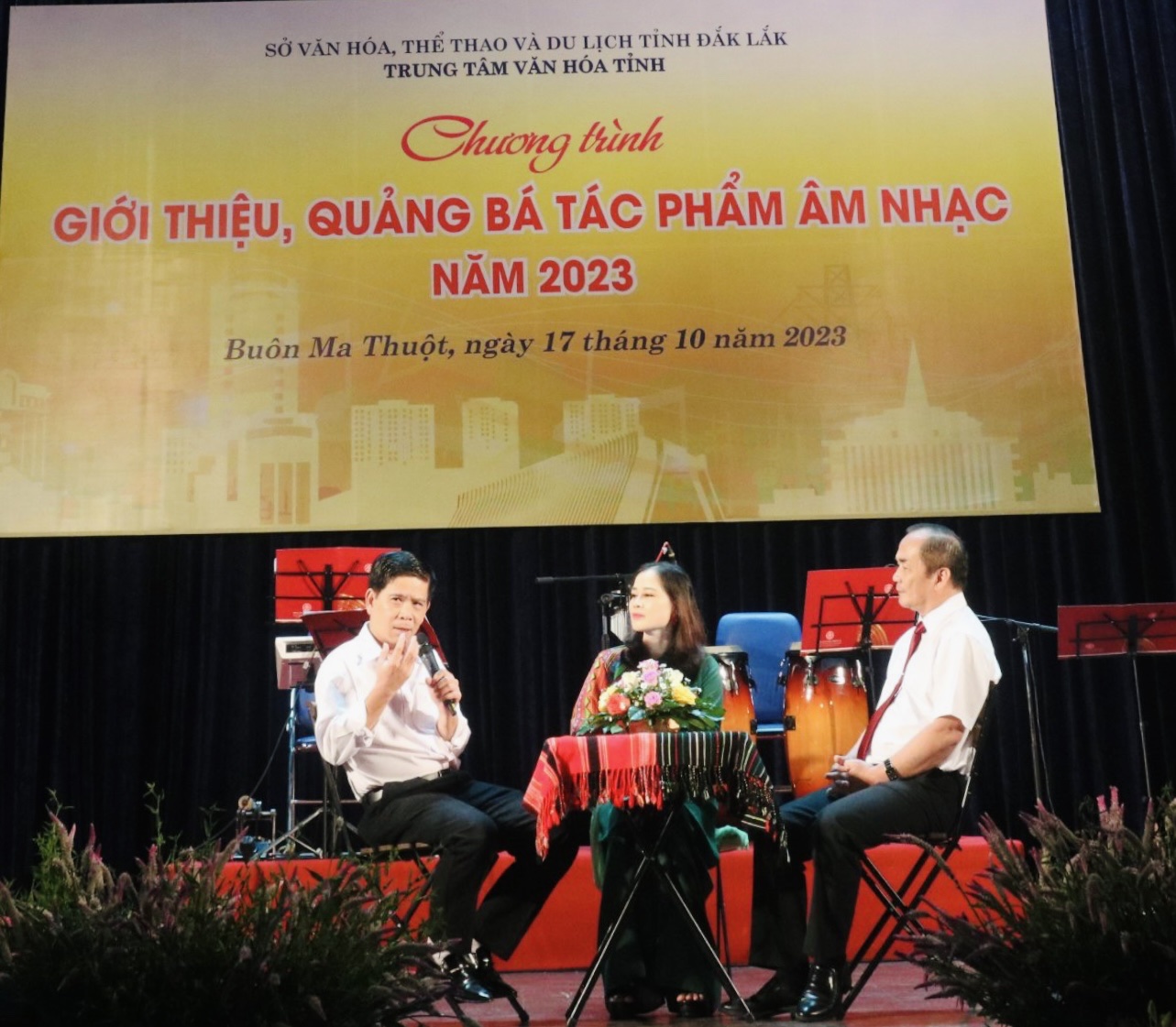Tại Chương trình, những tác phẩm âm nhạc đã đạt giải thưởng trong tỉnh, các sáng tác mới trong giai đoạn hiện nay về Đắk Lắk đã được giới thiệu đến công chúng như: “Ngời sáng niềm tin”, “Lặng thầm! Những chuyến đò”, “Bạn ơi! Hãy vui lên” của tác giả JohnB; “Đẩy sóng”, “Ngày xa em”, “Đắk Lắk quê hương tôi” của tác giả Khắc Dũng; “Hân hoan chào đón Đại hội”, “Thiếu nhi Việt Nam - rèn đức luyện tài” của Nhạc sĩ Vũ Đình Ty - Thúy Hiền…Những ca khúc với giai điệu, ca từ đẹp, dạt dào cảm xúc của các Nhạc sĩ, tác giả trước vẻ đẹp của thiên nhiên, con người, ca ngợi tình yêu quê hương, cuộc sống.