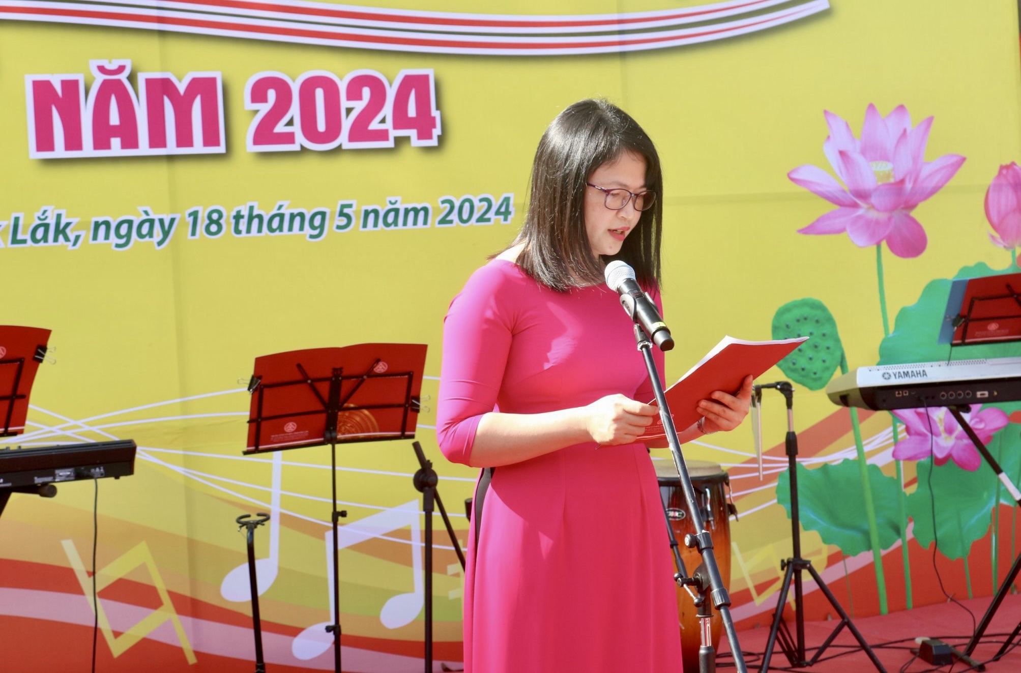 Bà Đào Thị Thu Hiền, Phó Giám đốc TTVH tỉnh phát biểu khai mạc Chương trình