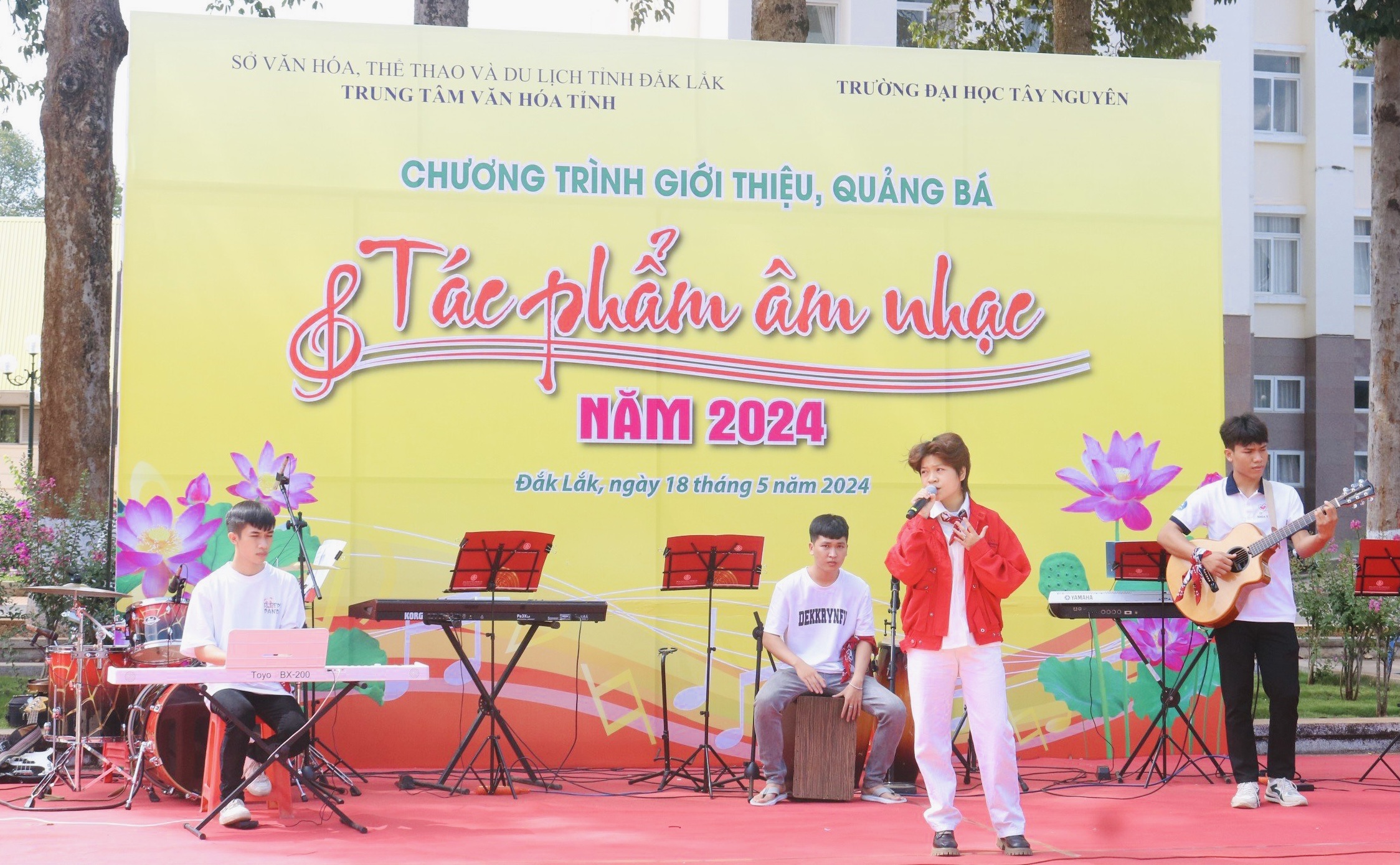 Sáng ngày 18/5, Trung tâm Văn hóa tỉnh phối hợp với Trường Đại học Tây Nguyên đã tổ chức Chương trình giới thiệu, quảng bá tác phẩm âm nhạc kỳ 2, năm 2024 tại Trường Đại học Tây Nguyên.