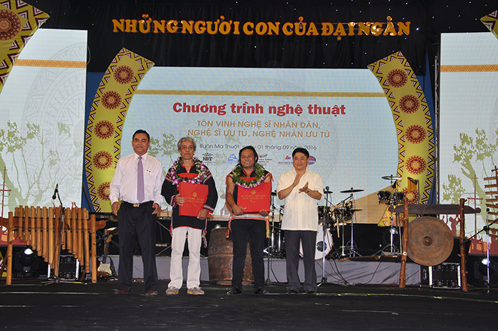 Tối 1-9, tại Trung tâm Văn hóa tỉnh, Sở Văn hóa, Thể thao và Du lịch đã tổ chức Chương trình nghệ thuật “Những người con của đại ngàn” nhằm tôn vinh các nghệ sĩ, nghệ nhân được Nhà nước phong tặng danh hiệu Nghệ sĩ Nhân dân, Nghệ sĩ ưu tú và truy tặng danh hiệu nghệ nhân ưu tú; đồng thời là một trong những hoạt động chào mừng kỷ niệm 71 năm Cách mạng tháng Tám, Quốc khánh 2/9 (02/9/1945 - 02/9/2016) và Ngày Âm nhạc Việt Nam (03/9). Tham dự Chương trình nghệ thuật có Bí thư Tỉnh ủy Êban Y Phu; Phó Bí thư Thường trực Tỉnh ủy Phạm Minh Tấn; Phó Bí thư Tỉnh ủy, Chủ tịch HĐND Y Biêr Niê; lãnh đạo các sở, ban, ngành cùng đông đảo nhân dân trên địa bàn tỉnh.