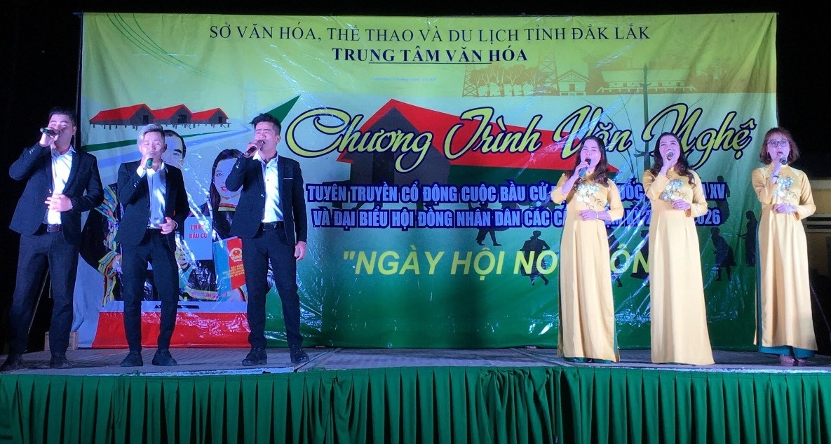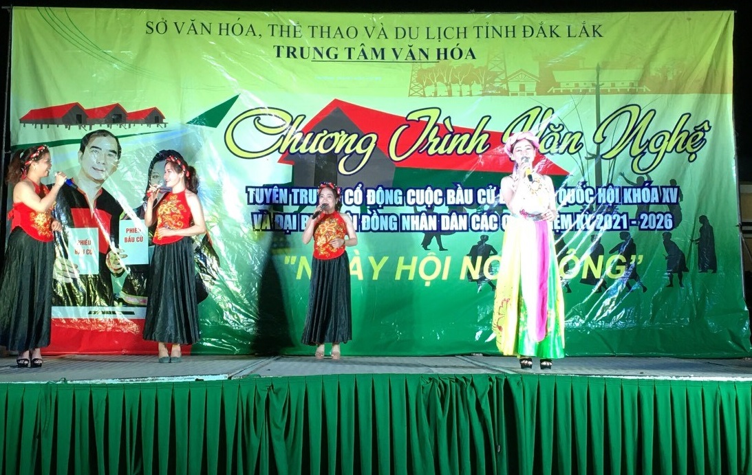 Từ ngày 22/3/2021 đến ngày 09/4/2021, Đội Tuyên truyền lưu động thuộc Trung tâm Văn hóa tỉnh tổ chức biểu diễn chương trình văn nghệ tuyên truyền cổ động cuộc bầu cử Đại biểu Quốc hội khóa XV và đại biểu HĐND các cấp nhiệm kỳ 2021-2026 với chủ đề “Ngày hội non sông” phục vụ Nhân dân các dân tộc tại các xã thuộc huyện Ea Súp và Ea Kar.