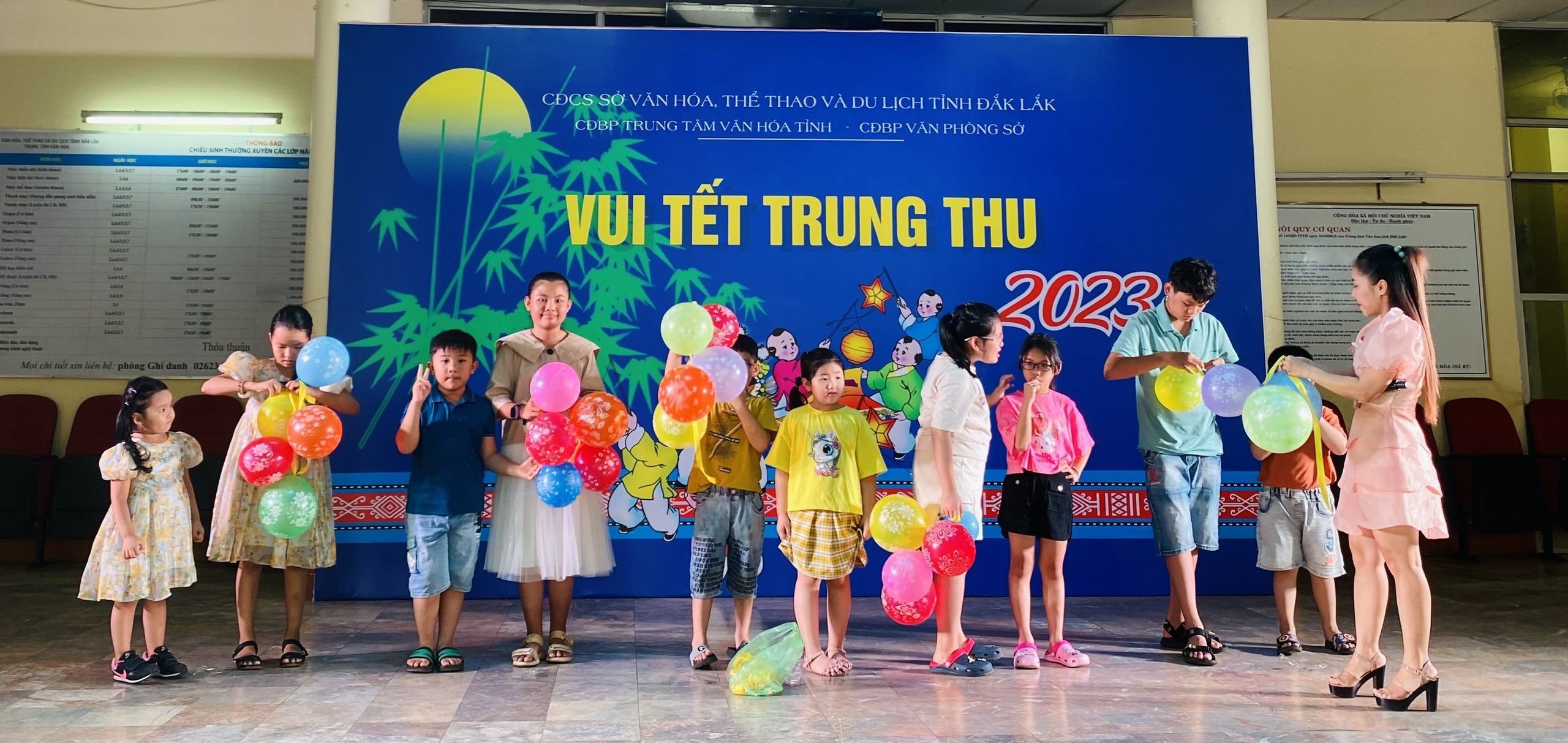 Chiều ngày 23/9/2023 (nhằm ngày 9/8 âm lịch), Công đoàn Bộ phận Trung tâm Văn hóa tỉnh phối hợp Công đoàn Bộ phận Văn phòng Sở VHTTDL tổ chức Chương trình Vui tết Trung thu năm 2023 cho các cháu Thiếu niên, nhi đồng là con của công chức, viên chức và người lao động hai đơn vị.
