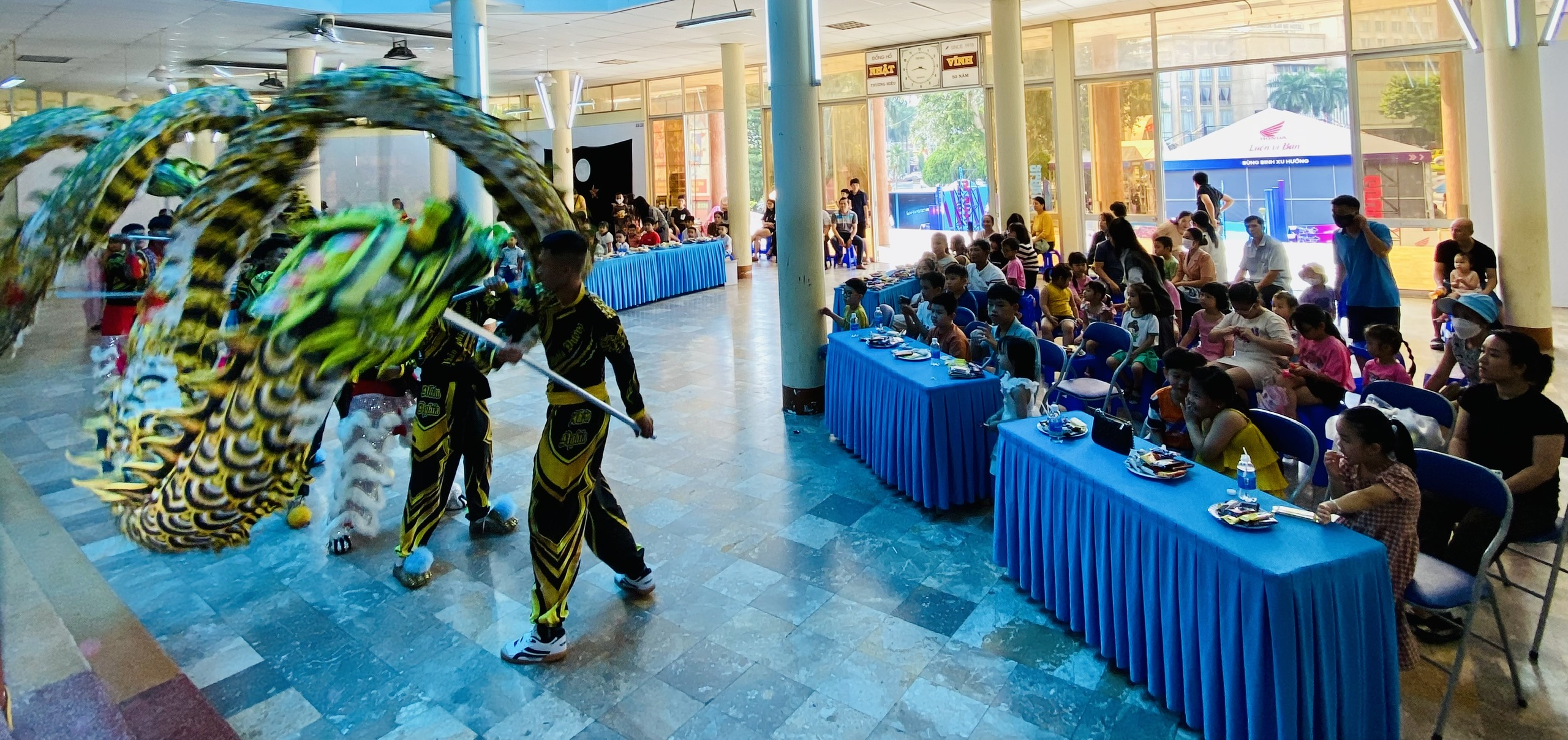 Tại Chương trình, các cháu Thiếu niên, nhi đồng đã được thưởng thức nhiều tiết mục Múa rối sinh động, nội dung phong phú, hấp dẫn như: Trăng cười trăng khóc, Ban nhạc Heo con,... Ngoài ra, các cháu còn xem múa Lân - Rồng, trình diễn thời trang do CLB Võ thuật Lân sư rồng Nhân Nghĩa Đường, CLB Người mẫu - thời trang Siêu mẫu Phượng Zenana thực hiện; tham gia các trò chơi vui nhộn và giao lưu văn nghệ sôi nổi, thú vị với chị Hằng.