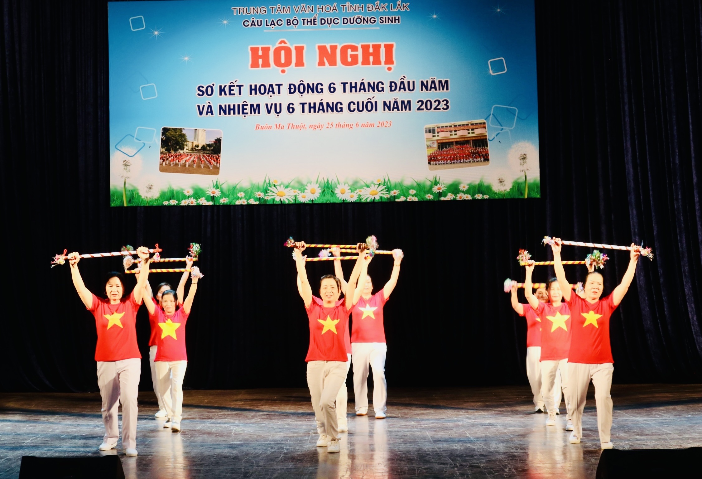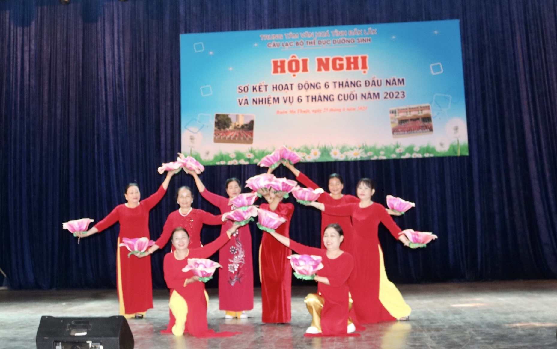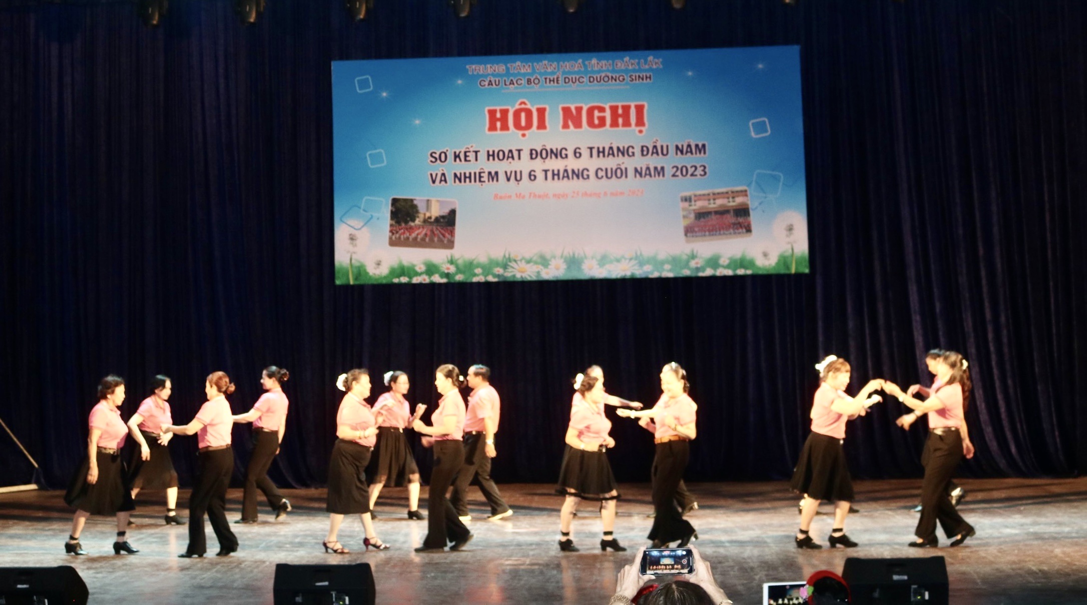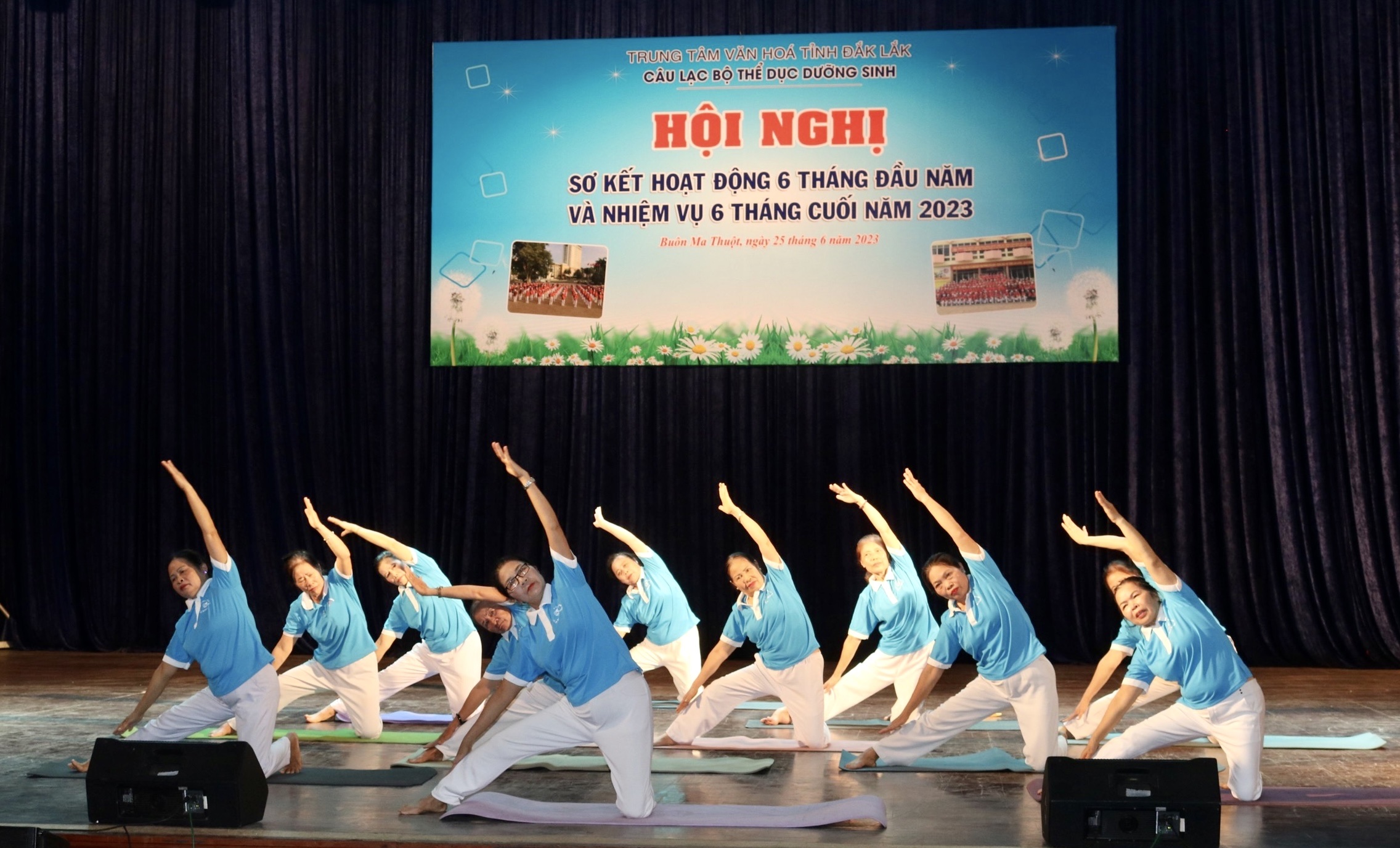 Sáng 25/6/2023, CLB Thể dục Dưỡng sinh thuộc Trung tâm Văn hóa tỉnh Đắk Lắk sơ kết hoạt động 6 tháng đầu năm 2023 và tổ chức Chương trình đồng diễn, giao lưu văn nghệ, thể dục dưỡng sinh. Chương trình có sự tham gia của hơn 200 hội viên của CLB Thể dục Dưỡng sinh.