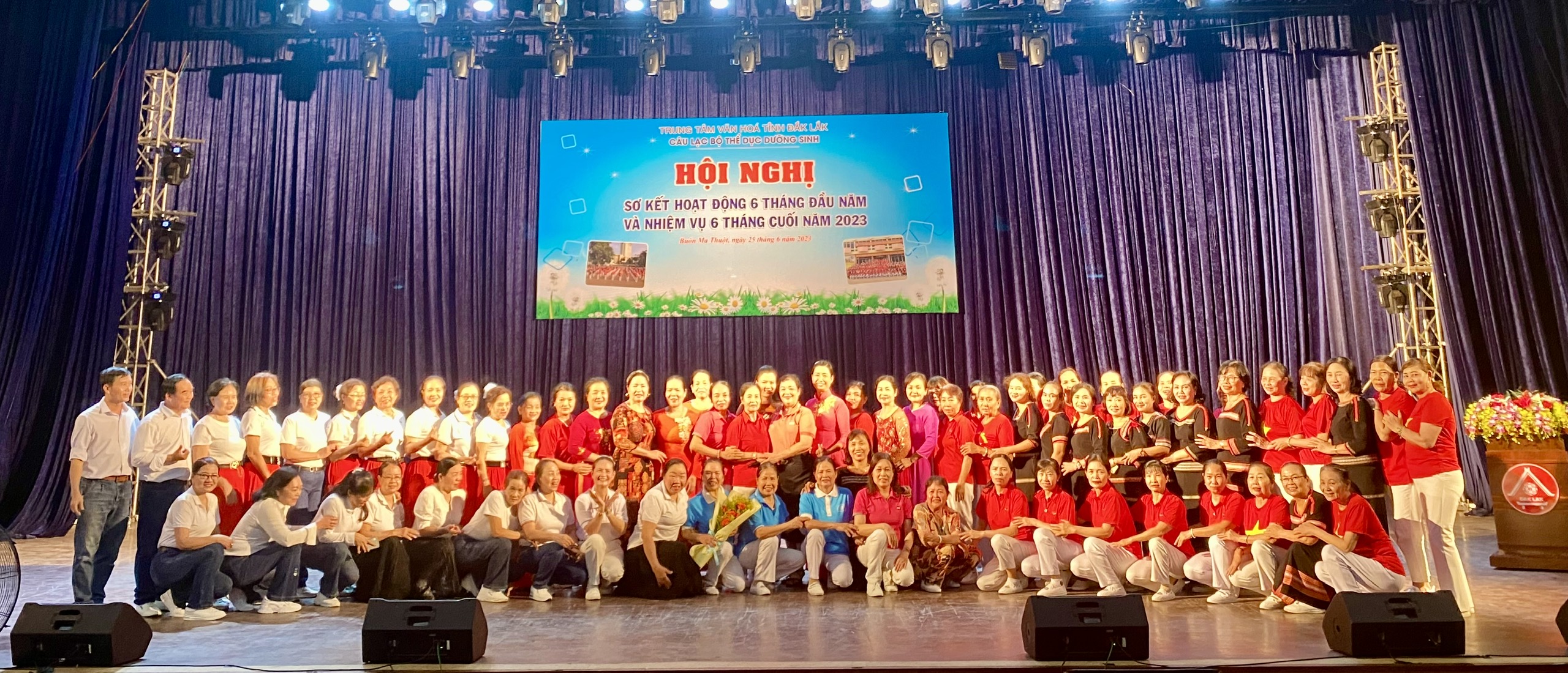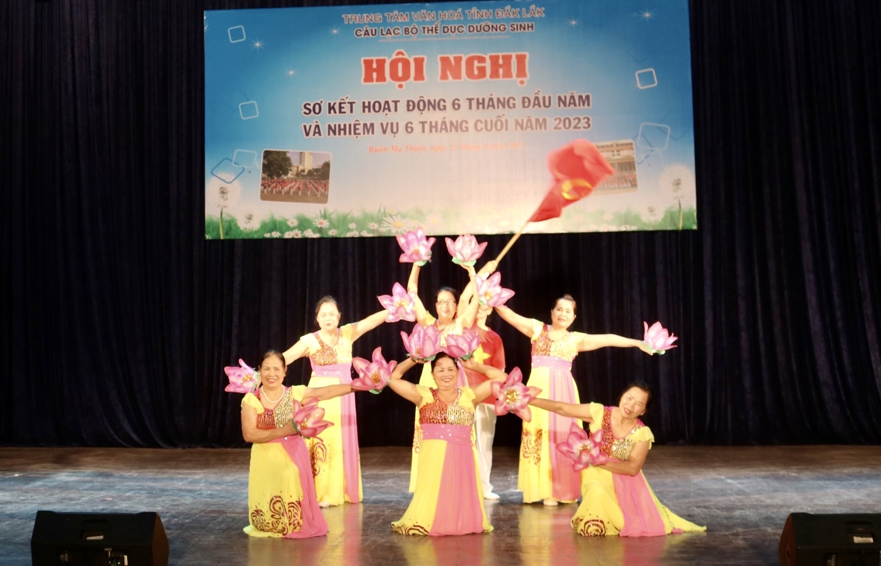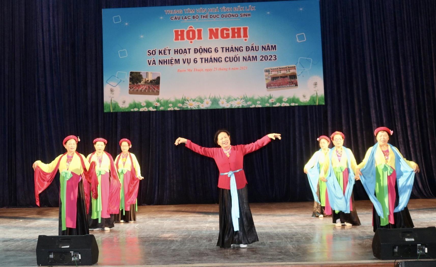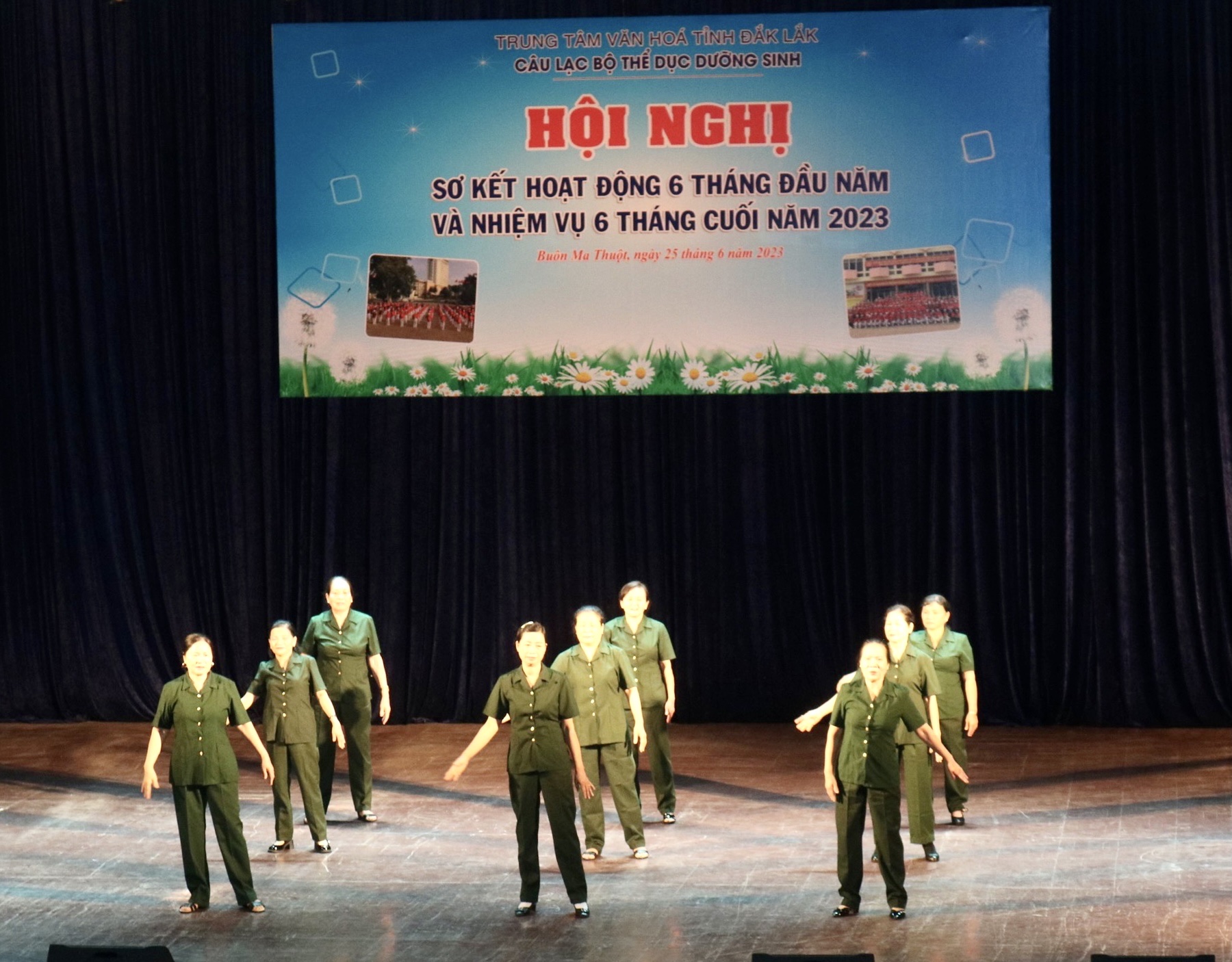 Sáng 25/6/2023, CLB Thể dục Dưỡng sinh thuộc Trung tâm Văn hóa tỉnh Đắk Lắk sơ kết hoạt động 6 tháng đầu năm 2023 và tổ chức Chương trình đồng diễn, giao lưu văn nghệ, thể dục dưỡng sinh. Chương trình có sự tham gia của hơn 200 hội viên của CLB Thể dục Dưỡng sinh.