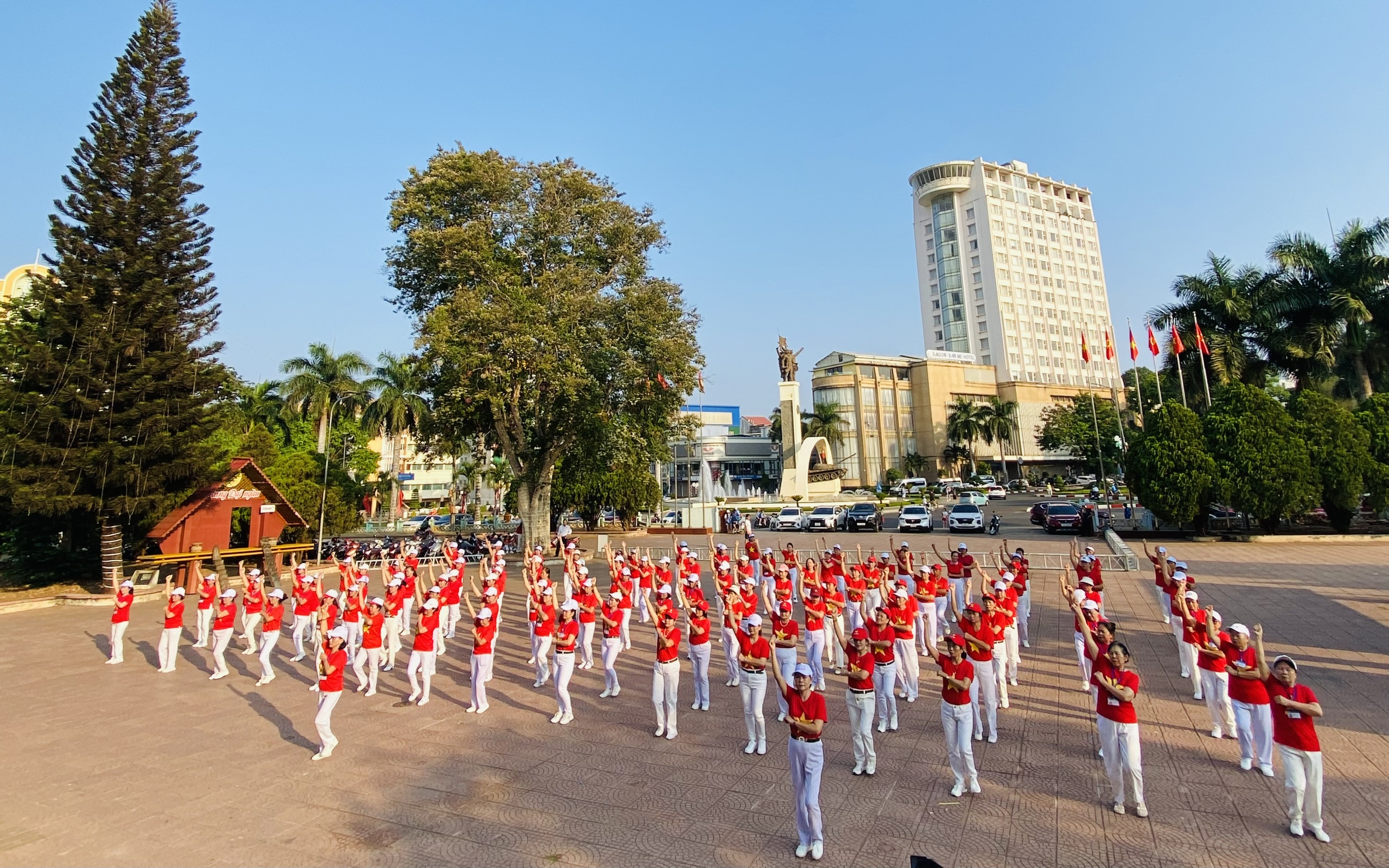 Hội viên Câu lạc bộ đã biểu diễn, cống hiến những màn đồng diễn mềm mại, khỏe khoắn và đẹp mắt, thể hiện tình yêu quê hương, đất nước với các bài Tiến về Sài Gòn, Giải phóng miền Nam và Nối vòng tay lớn.