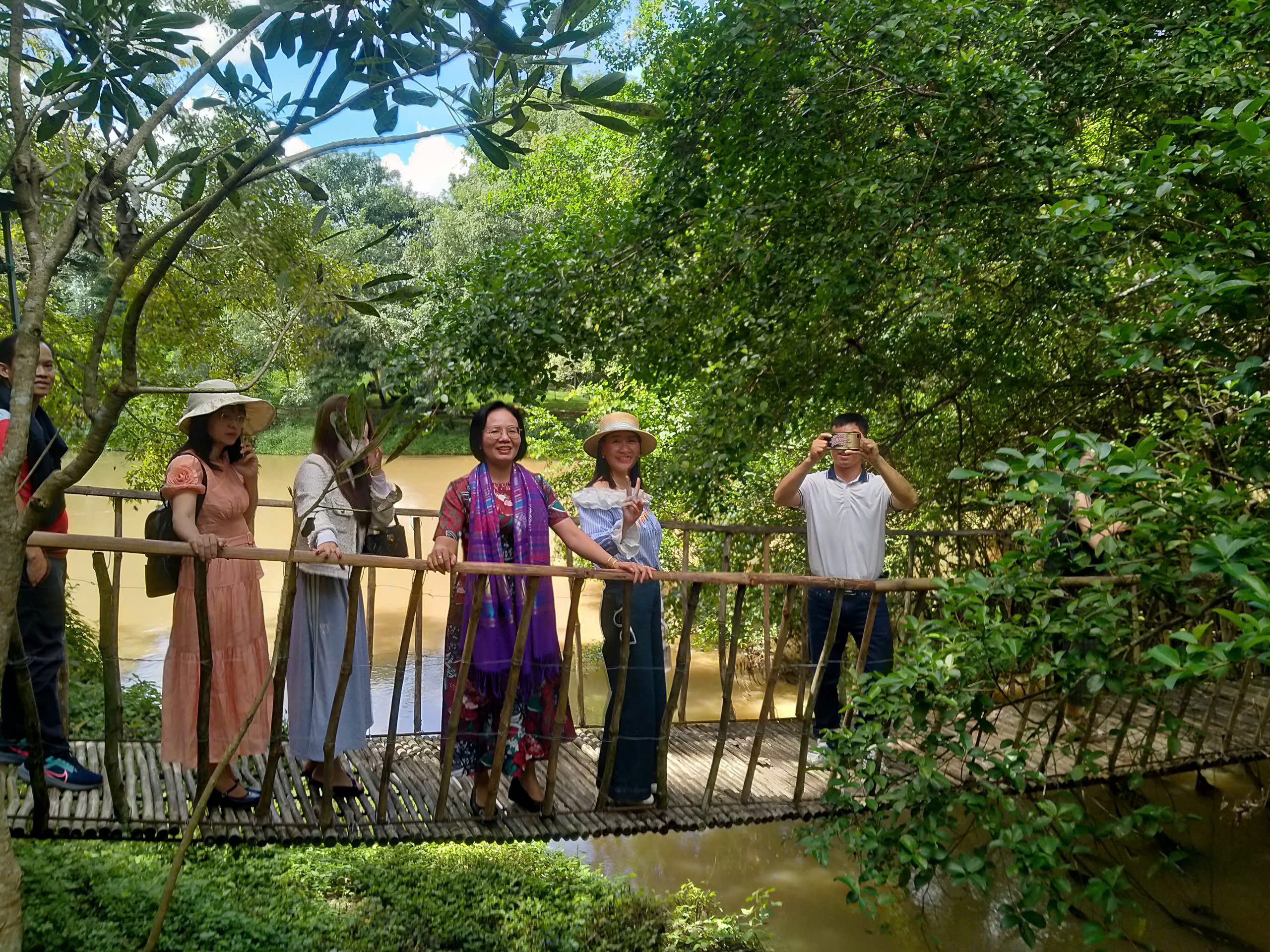 Du khách trải nghiệm du lịch tại khu du lịch Cầu treo Buôn Đôn