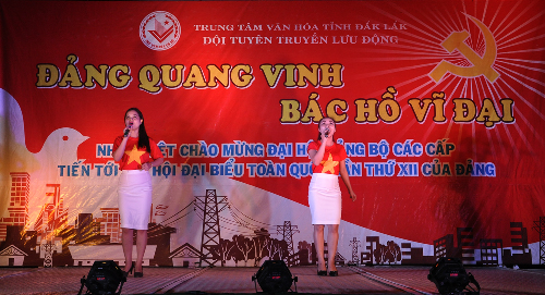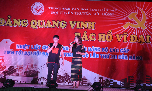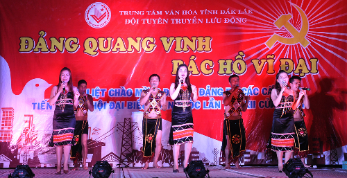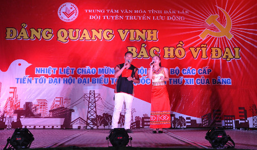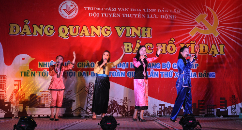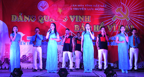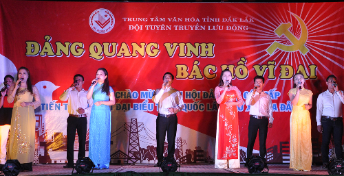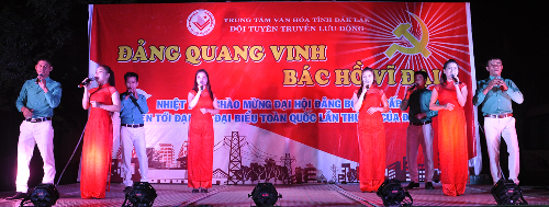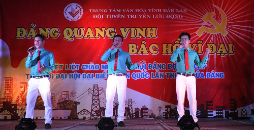 Thiết thực chào mừng thành công Đại hội Đảng bộ các cấp tiến tới Đại hội Đại biểu Tỉnh Đảng bộ lần thứ XVI, Đội Tuyên truyền lưu động (Trung tâm Văn hóa tỉnh) vừa xây dựng Chương trình văn nghệ “Đảng quang vinh Bác Hồ vĩ đại” tuyên truyền phục vụ nhân dân các dân tộc trong tỉnh.