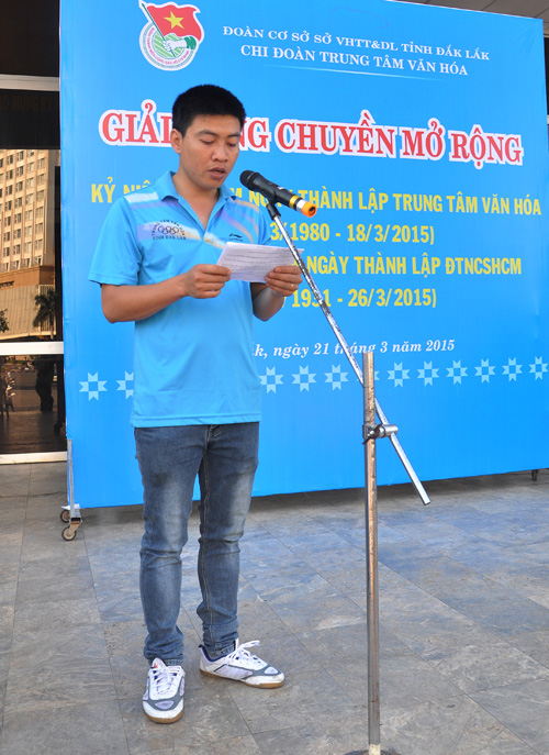 Chi đoàn Trung tâm Văn hóa tỉnh vừa tổ chức giao lưu giải bóng chuyền mở rộng chào mừng kỷ niệm 35 năm thành lập Trung tâm Văn hóa tỉnh Đắk Lắk 18/3/1980 – 18/3/2015 và kỷ niệm 84 năm ngày thành lập Đoàn Thanh niên cộng sản Hồ Chí Minh 26/3/1931 – 26/32015; tham gia tranh tài có 04 Chi đoàn: Văn phòng Sở, Trung tâm Phát hành phim và Chiếu bóng, Đoàn Ca múa dân tộc và Trung tâm Văn hóa. Đây là một sân chơi bổ ích, nhằm đẩy mạnh phong trào luyện tập thể thao trong đoàn viên thanh niên; khỏe để lao động, học tập và hoàn thành tốt nhiệm vụ được giao.
