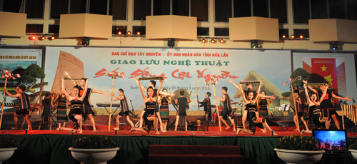 Chương trình giao lưu nghệ thuật có sự tham gia của 5 đoàn nghệ thuật đến từ 5 tỉnh Tây Nguyên. Trong chương trình, các đoàn nghệ thuật đã giao lưu qua các hình thức như diễn tấu cồng chiêng, biểu diễn dân ca, dân vũ và trình diễn trang phục các dân tộc Tây Nguyên. Thông qua hoạt động nhằm góp phần giữ gìn và phát huy bản sắc văn hóa, truyền thống các dân tộc Tây Nguyên. Ban Chỉ đạo Tây Nguyên tặng Bằng khen cho 5 đoàn nghệ thuật.