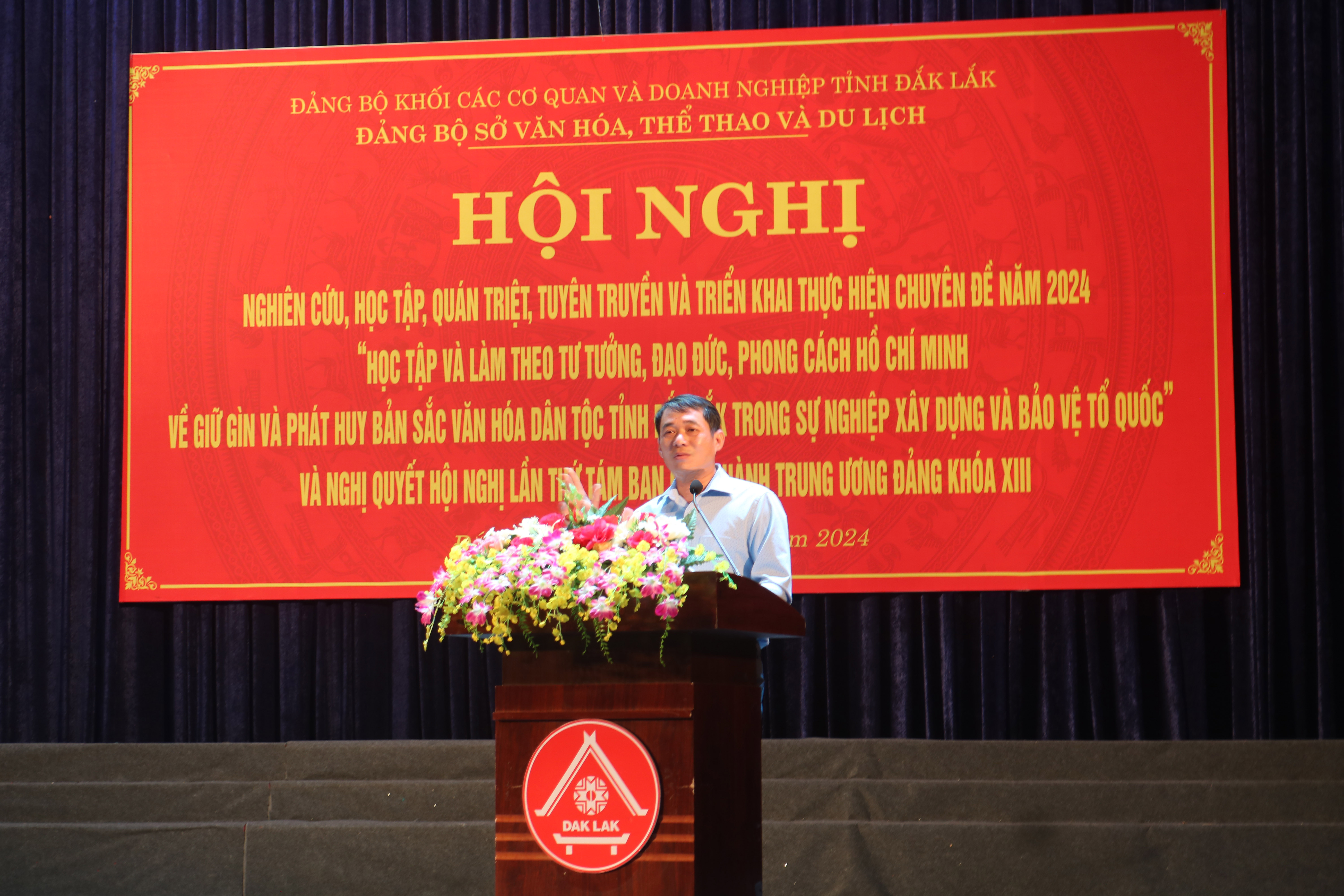 Tại hội nghị, đồng chí Thái Hồng Hà, Tỉnh ủy viên, Bí thư Đảng ủy, Giám đốc Sở Văn hóa, Thể thao và Du lịch đã quán triệt Chuyên đề năm 2024 “Học tập và làm theo tư tưởng, đạo đức, phong cách Hồ Chí Minh về giữ gìn và phát huy bản sắc văn hóa dân tộc tỉnh Đắk Lắk trong sự nghiệp xây dựng và bảo vệ Tổ quốc”. Đồng thời nhấn mạnh: mỗi đảng viên, công chức, viên chức, người lao động chọn một số nội dung cụ thể trong Chuyên đề 2024 gắn với công tác chuyên môn, đảm bảo việc thực hiện hiệu quả, thiết thực, học tập và làm theo tư tưởng, đạo đức, phong cách Hồ Chí Minh.