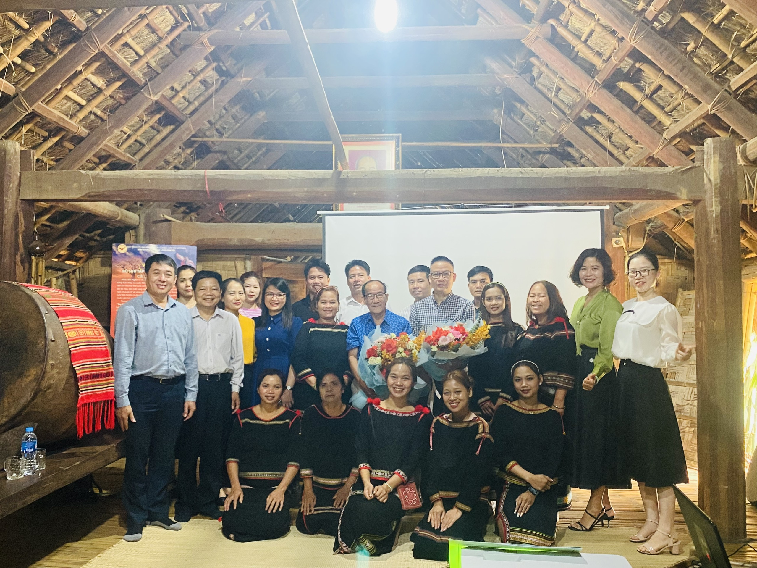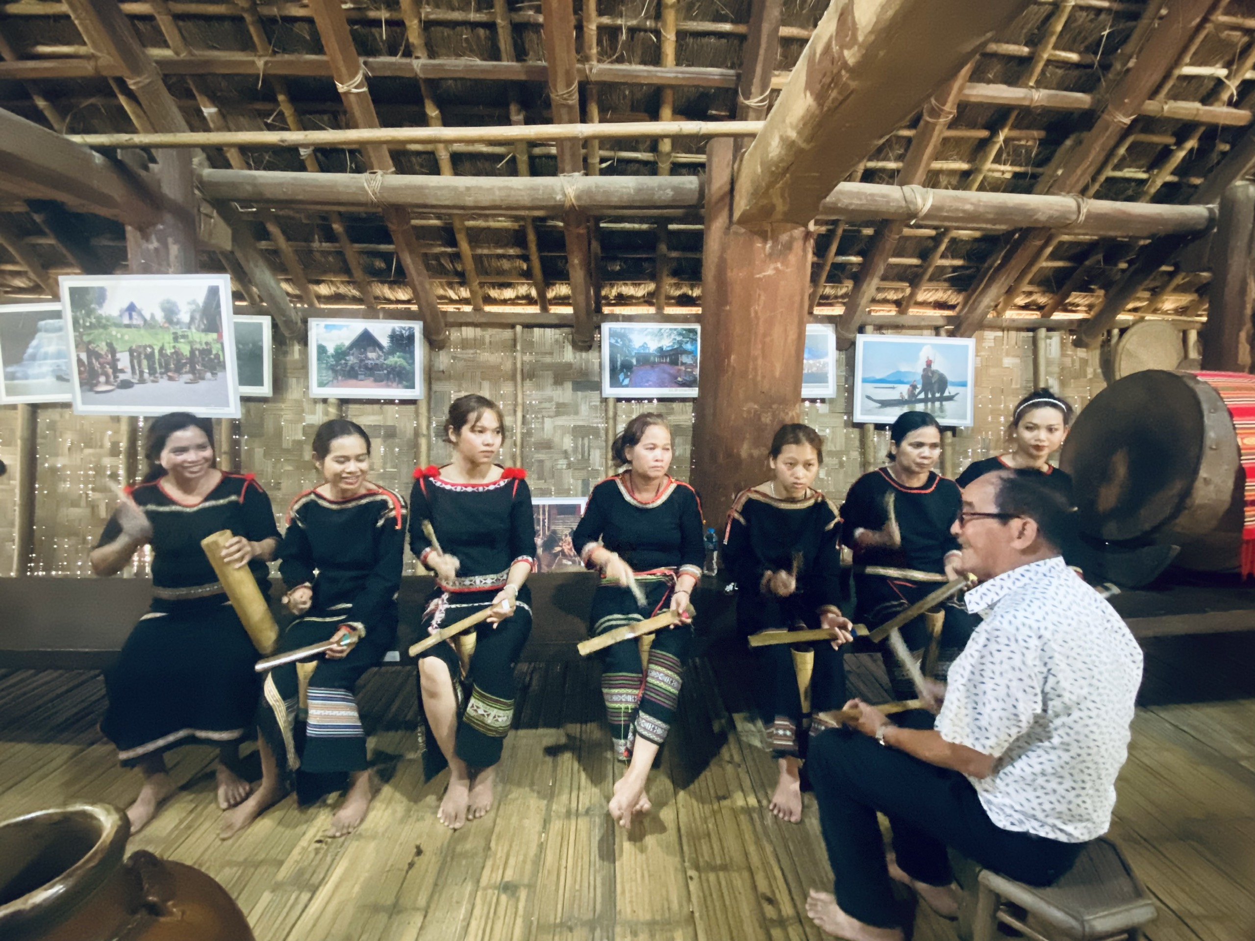 Trong 5 ngày (từ 17/4 - 21/4/2023), các nghệ nhân hoạt động hàng ngày tại Làng Văn hóa - Du lịch Việt Nam được NSƯT Vũ Lân, Phó Chủ tịch Hội đồng nghệ thuật Hội Văn học Nghệ thuật tỉnh và Tiến sỹ Nguyễn Đức Thắng, Trưởng khoa Du lịch, Giảng viên chính, Trường Đại học Công nghệ Đông Á trao đổi, hướng dẫn kỹ năng giao tiếp, cách thức đón tiếp khách du lịch, vấn đề vệ sinh an toàn thực phẩm tại Không gian Làng dân tộc Ê đê; kỹ năng tổ chức xây dựng các chương trình văn hóa dân gian phục vụ du khách; hướng dẫn sử dụng một số nhạc cụ dân tộc Tây Nguyên; phương pháp tổ chức hoạt động tương tác với du khách với các nhạc cụ dân gian; giới thiệu và thực hành cách thức diễn tấu, hòa tấu, độc tấu cơ bản; cách chỉnh âm, bảo quản một số nhạc cụ dân tộc Tây Nguyên…
