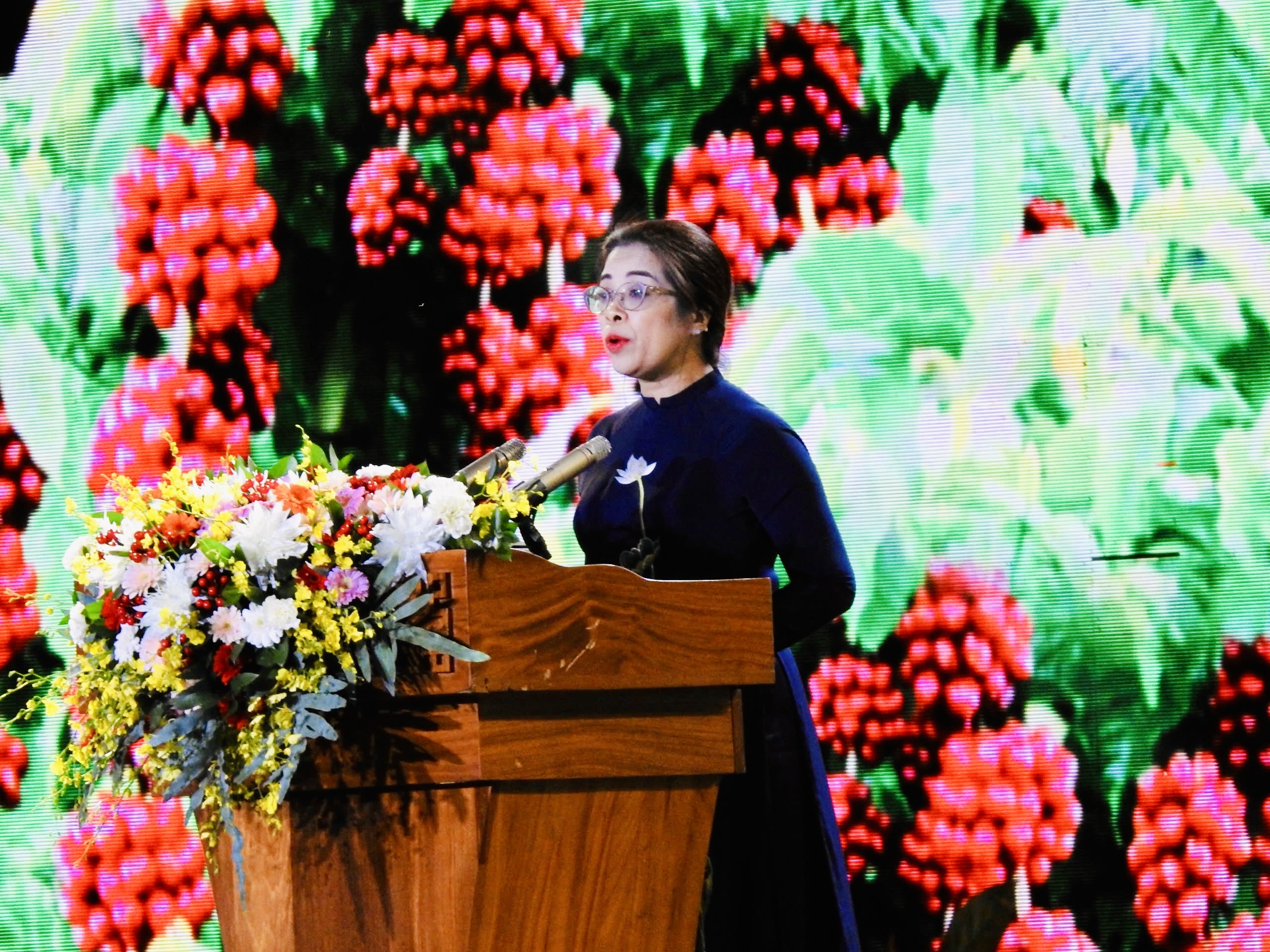 Bà Huỳnh Thị Chiến Hòa, Phó Bí thư Thường trực Tỉnh ủy, Chủ tịch HĐND tỉnh Đắk Lắk phát biểu