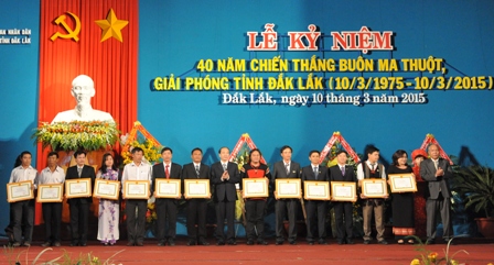 Sáng ngày 10 tháng 3, Tỉnh ủy, HĐND, UBND, Ủy ban MTTQ Việt Nam tỉnh tổ chức trọng thể Lễ kỷ niệm 40 năm Chiến thắng Buôn Ma Thuột, giải phóng tỉnh Đắk Lắk (10/3/1975 – 10/3/2015). Tham dự Lễ kỷ niệm có đồng chí Lê Hồng Anh, Ủy viên Bộ Chính trị, Thường trực Ban Bí thư Trung ương Đảng; Đại tướng Trần Đại Quang, Ủy viên Bộ Chính trị, Bộ trưởng Bộ Công an, Trưởng Ban Chỉ đạo Tây Nguyên; Đ/c Niê Thuật, Ủy viên Trung ương Đảng, Bí thư Tỉnh ủy, Chủ tịch HĐND tỉnh, Trưởng Đoàn đại biểu Quốc hội tỉnh; Phạm Ngọc Nghị, Phó Bí thư Tỉnh ủy, Chủ tịch UBND tỉnh; các đồng chí trong Ban Thường vụ Tỉnh ủy; các cán bộ lão thành cách mạng và lãnh đạo tỉnh qua các thời kỳ; Mẹ Việt Nam Anh hùng; Anh hùng Lực lượng vũ trang nhân dân; Đoàn đại biểu người có uy tín trong đồng bào dân tộc thiểu số, tôn giáo tiêu biểu 5 tỉnh Tây Nguyên…