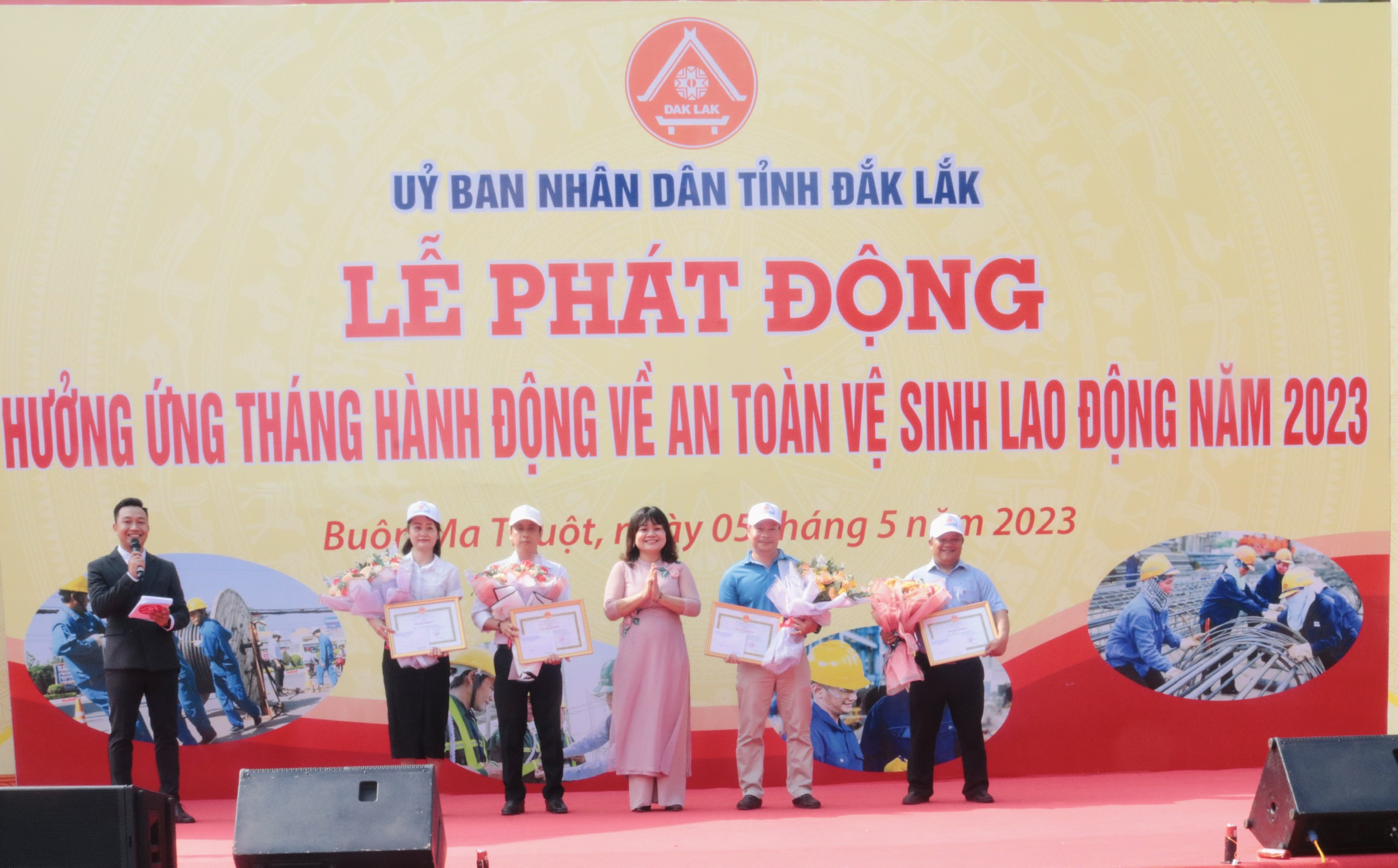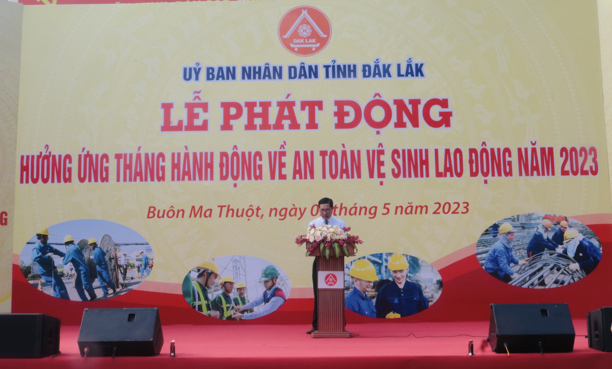 Sáng ngày 5/5, tại Trung tâm Văn hóa tỉnh, Ủy ban Nhân dân tỉnh tổ chức Lễ phát động hưởng ứng Tháng hành động về an toàn vệ sinh lao động năm 2023 trên địa bàn tỉnh với chủ đề “Tăng cường xây dựng quy trình, biện pháp làm việc an toàn và cải thiện điều kiện lao động, giảm căng thẳng tại nơi làm việc”. Thời gian triển khai thực hiện Tháng hành động bắt đầu từ ngày 01/5/2023 đến ngày 31/5/2023. Đến dự lễ phát động có bà H’Yim Kđok, Tỉnh ủy viên, Phó Chủ tịch UBND tỉnh, Trưởng Ban chỉ đạo Tháng hành động về an toàn, vệ sinh lao động tỉnh; đại diện lãnh đạo các sở, ban, ngành, UBND các huyện, thị xã, thành phố, doanh nghiệp đóng trên địa bàn tỉnh và gần 1.000 cán bộ, công nhân viên, người lao động của 30 đơn vị, doanh nghiệp đại diện cho các lực lượng lao động trên địa bàn tỉnh.