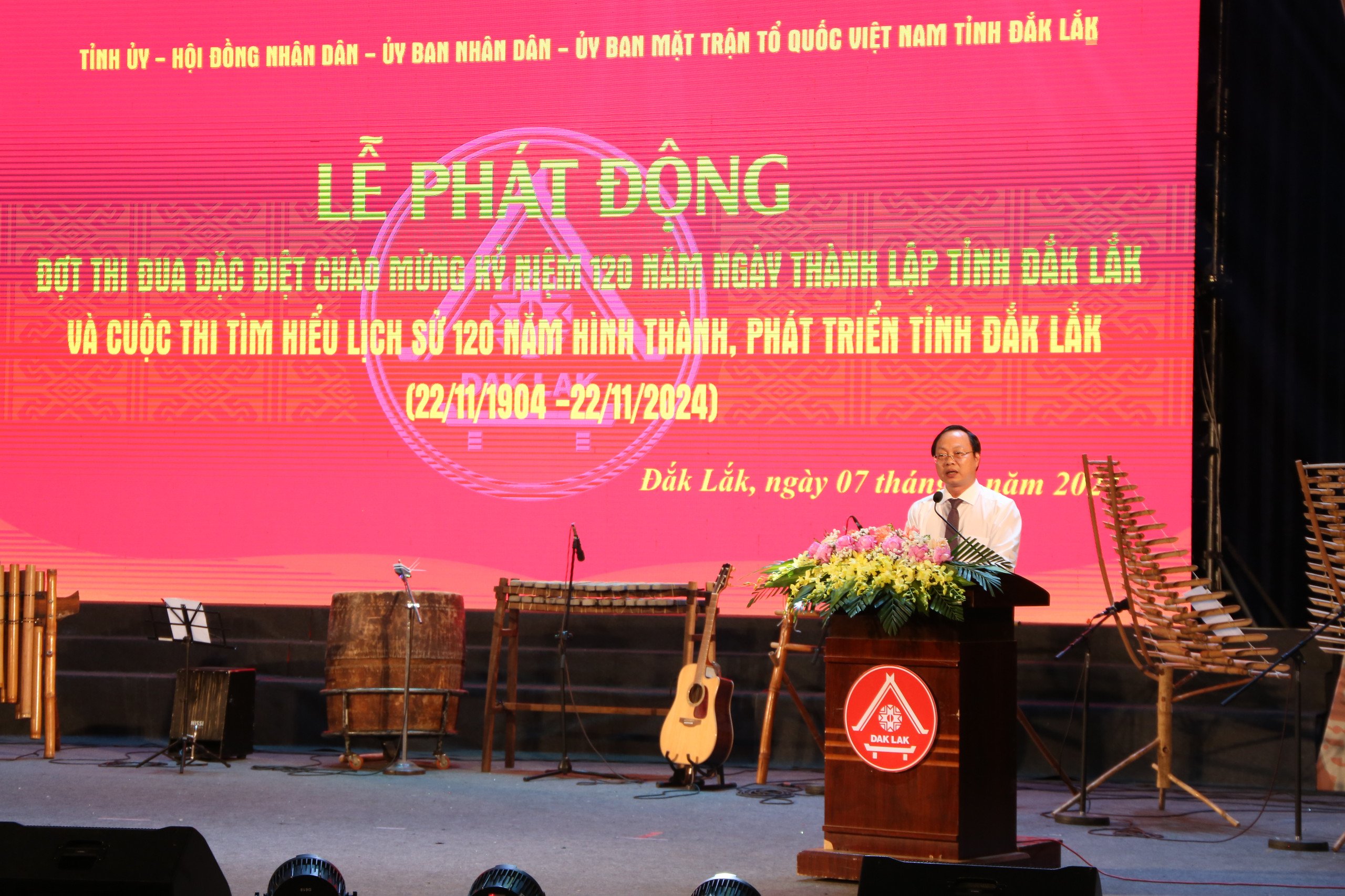 Lễ phát động thi đua đặc biệt chào mừng kỷ niệm 120 năm ngày thành lập tỉnh Đắk Lắk (22/11/1904-22/11/2024) và khởi động Cuộc thi tìm hiểu “Lịch sử 120 năm hình thành và phát triển tỉnh Đắk Lắk”