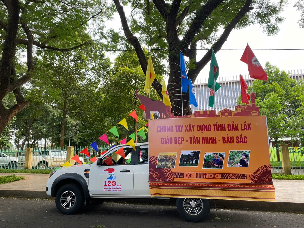 Nằm trong các hoạt động Hội thi Tuyên truyền lưu động tỉnh “ Đắk Lắk – Khát vọng tỏa sáng”, chiều 07/11, 13 Đội thi tuyên truyền lưu động các huyện, thị xã, thành phố đã tổ chức diễu hành xe tuyên truyền cổ động tại một số trục đường chính trên địa bàn thành phố Buôn Ma Thuột.