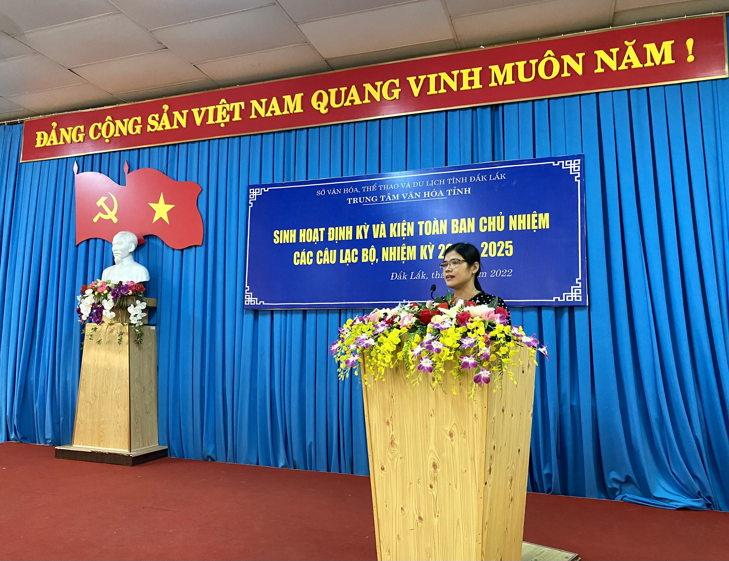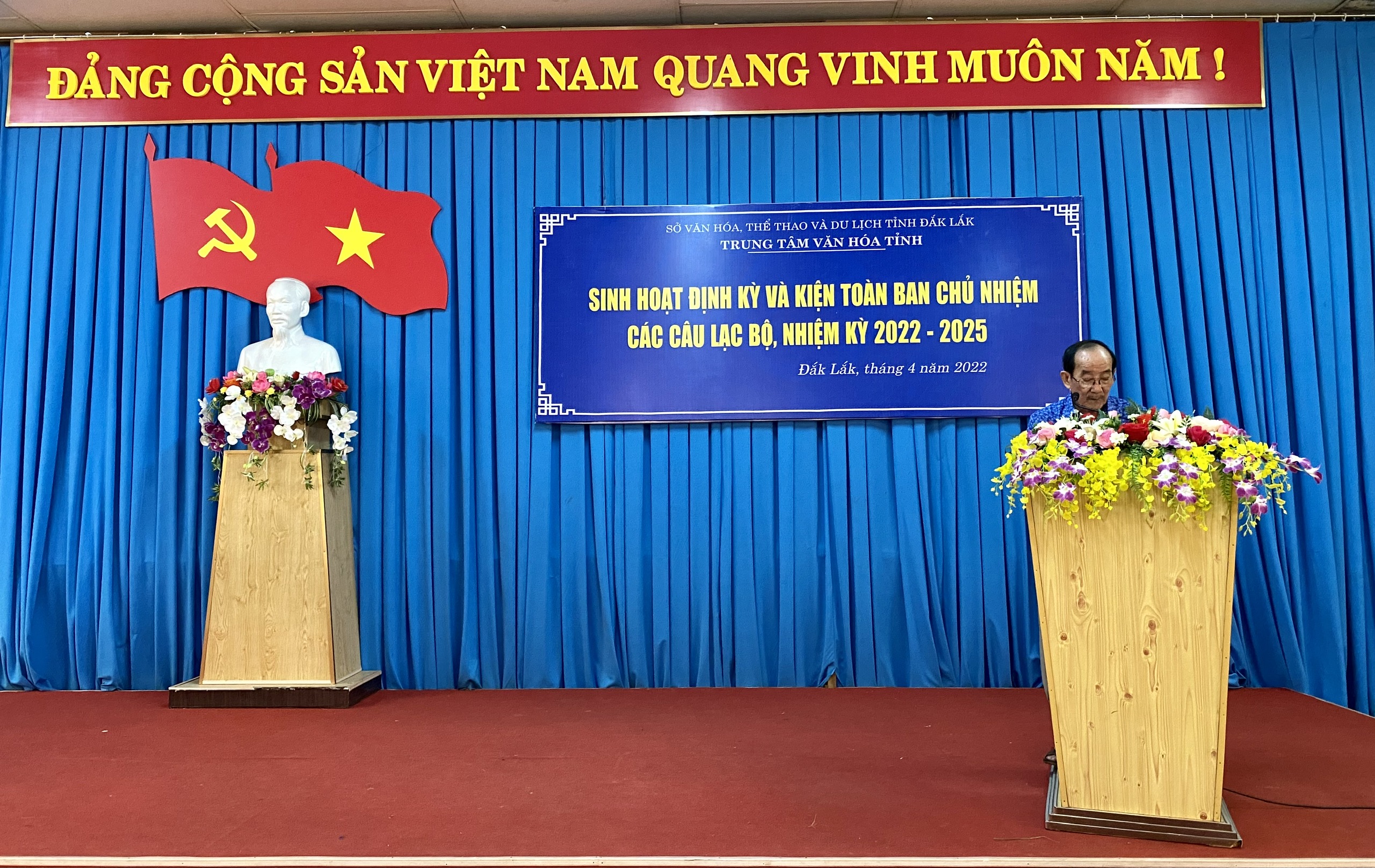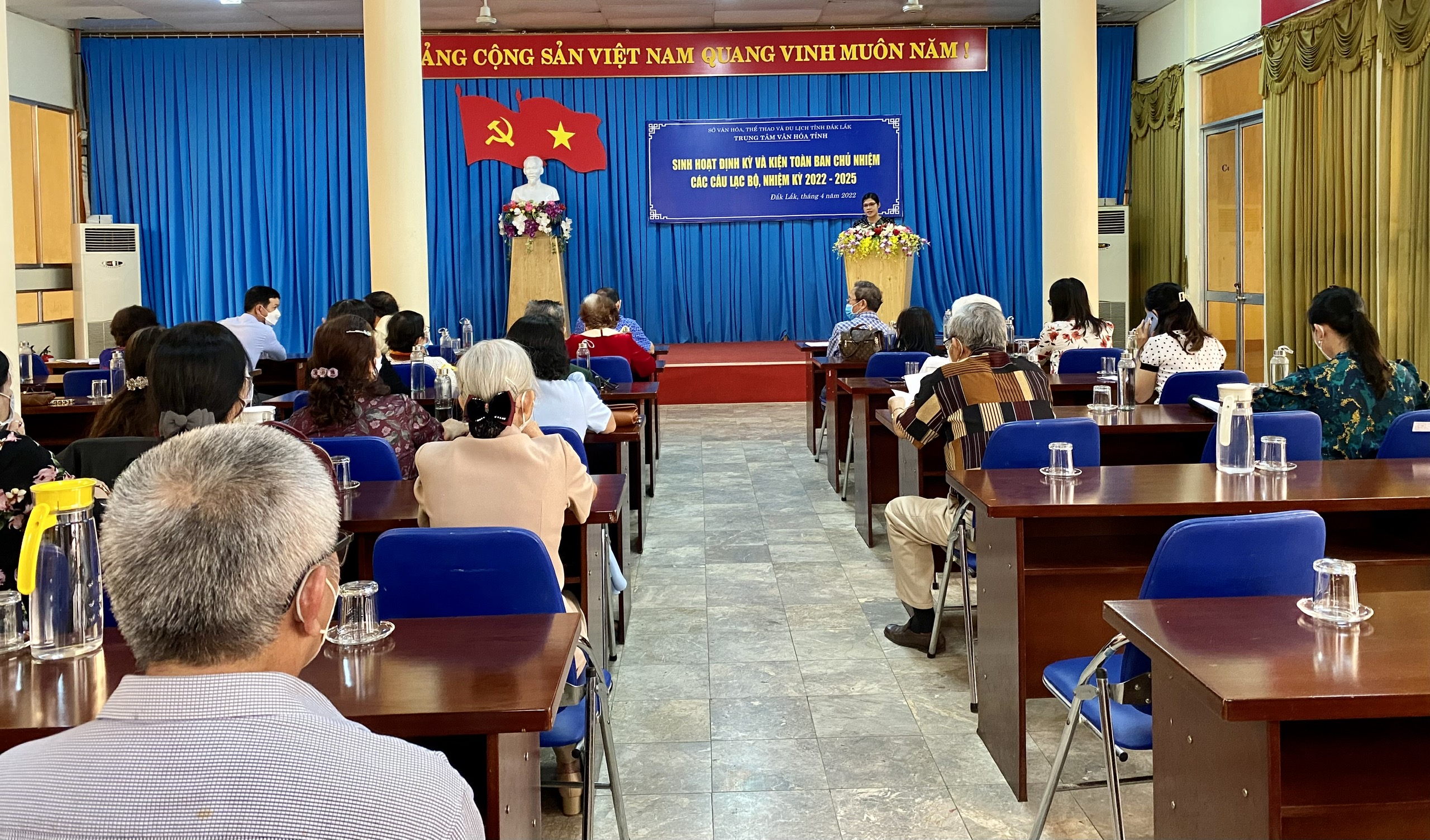 Sáng 15/4, Trung tâm Văn hóa tỉnh tổ chức buổi sinh hoạt định kỳ và kiện toàn Ban Chủ nhiệm Câu lạc bộ (CLB) Hưu trí Ngành Văn hóa, Thể thao và Du lịch tỉnh Đắk Lắk, nhiệm kỳ 2022 - 2025. Bà Trương Thị Ánh, Giám đốc Trung tâm Văn hóa tỉnh, bà Đào Thị Thu Hiền, Phó Giám đốc Trung tâm Văn hóa tỉnh cùng lãnh đạo Phòng Nghiệp vụ Văn hóa và hơn 50 hội viên của CLB đã đến tham dự.