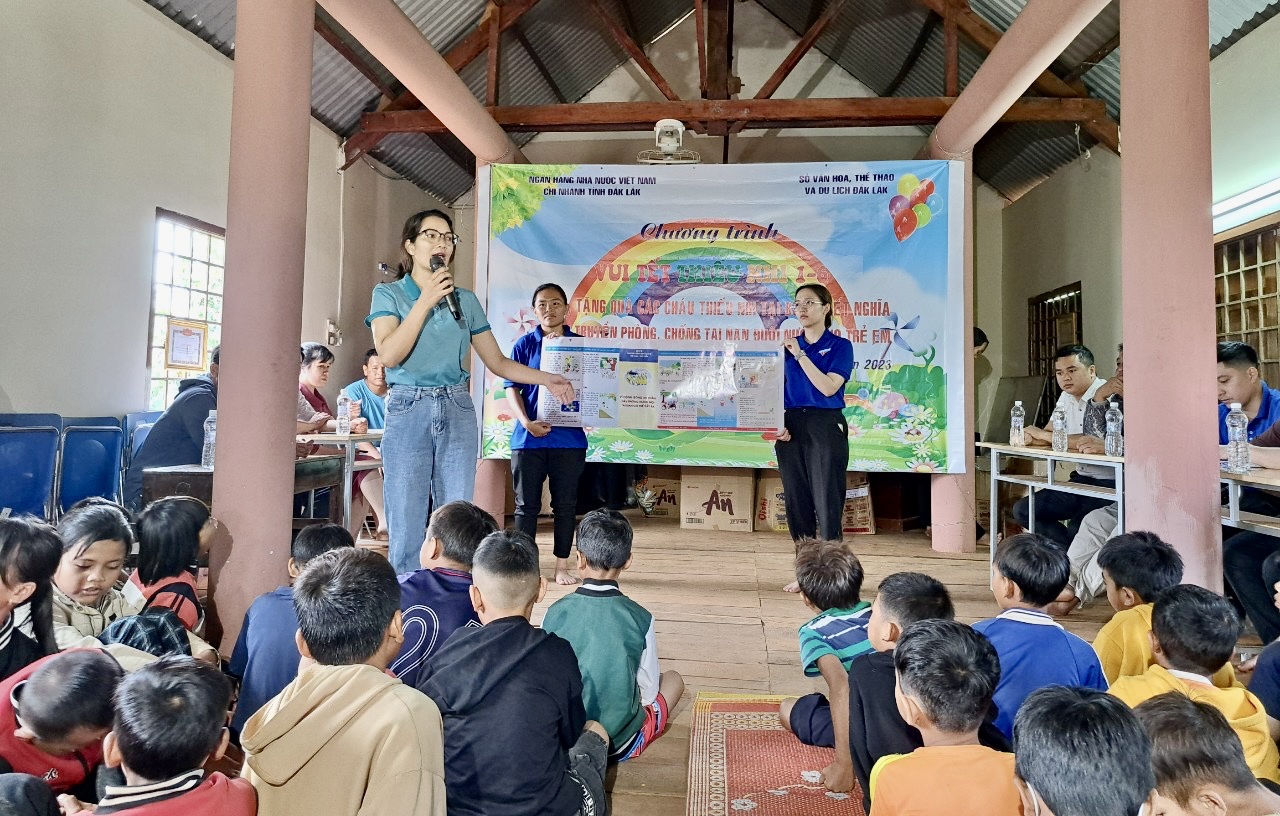 Nhân dịp Quốc tế thiếu nhi 1/6, ngày 31/5, Sở Văn hóa, Thể thao và Du lịch phối hợp Ngân hàng Nhà nước Việt Nam chi nhánh tỉnh Đắk Lắk và Công an huyện Buôn Đôn tổ chức Chương trình “Vui Tết thiếu nhi 1/6” tại buôn Tung Đrắk, xã Ea Drông, thị xã Buôn Hồ và buôn Knia 1, xã Ea Bar, huyện Buôn Đôn.
