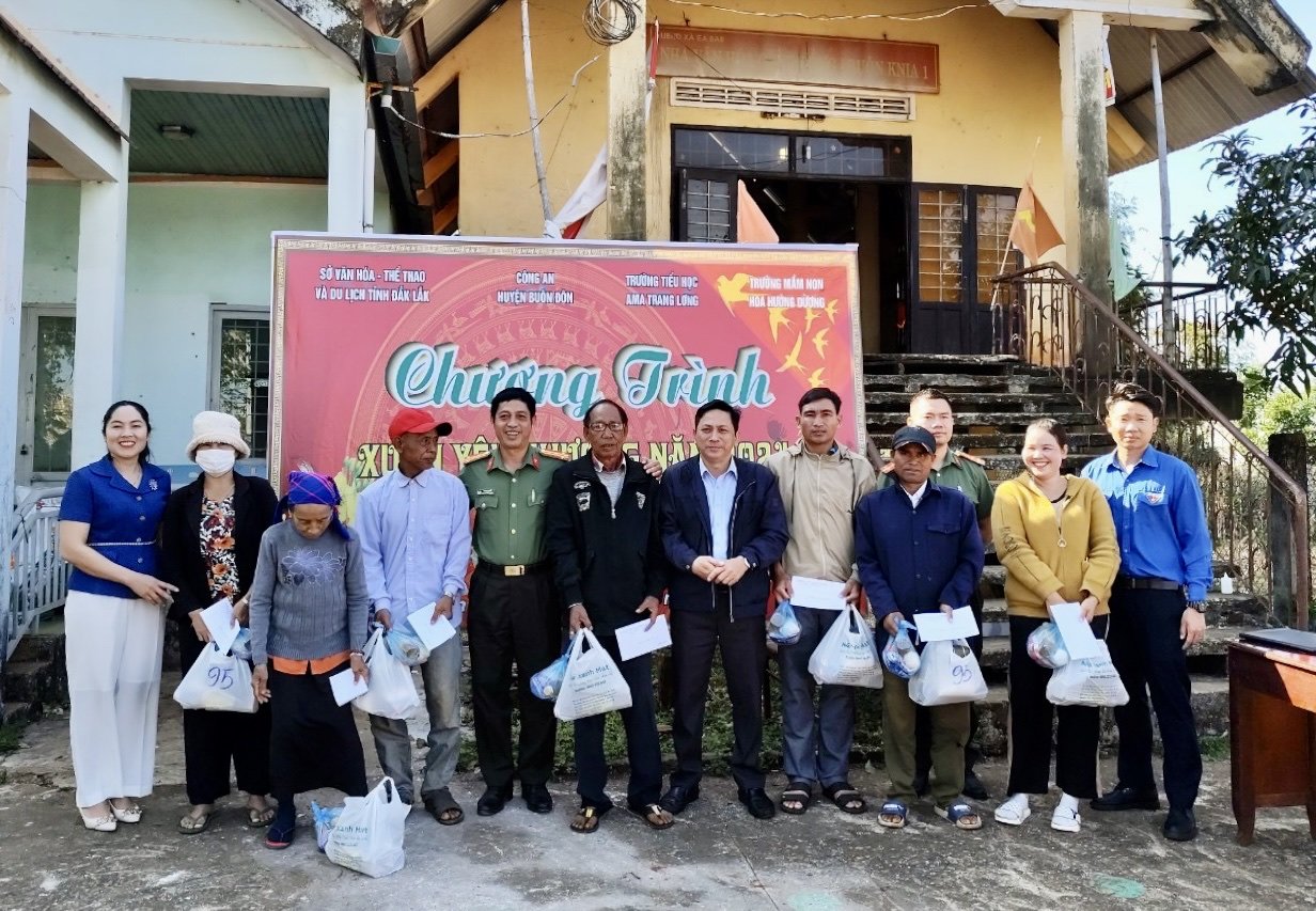 Ngày 30/01/2024, Sở Văn hóa, Thể thao và Du lịch phối hợp Ngân hàng Nhà nước tỉnh, Công ty cổ phần Bệnh viện đa khoa Hòa Bình, Trường THCS Tô Vĩnh Diện, Công an huyện Buôn Đôn, Trường Tiểu học Ama Trang Lơng, Trường MN Hoa Hướng Dương tổ chức thăm hỏi, tặng quà Tết cho bà con Nhân dân buôn kết nghĩa, gồm buôn Knia, xã Ea Bar, huyện Buôn Đôn và buôn Tung Krắk, xã Ea Drông, thị xã Buôn Hồ.