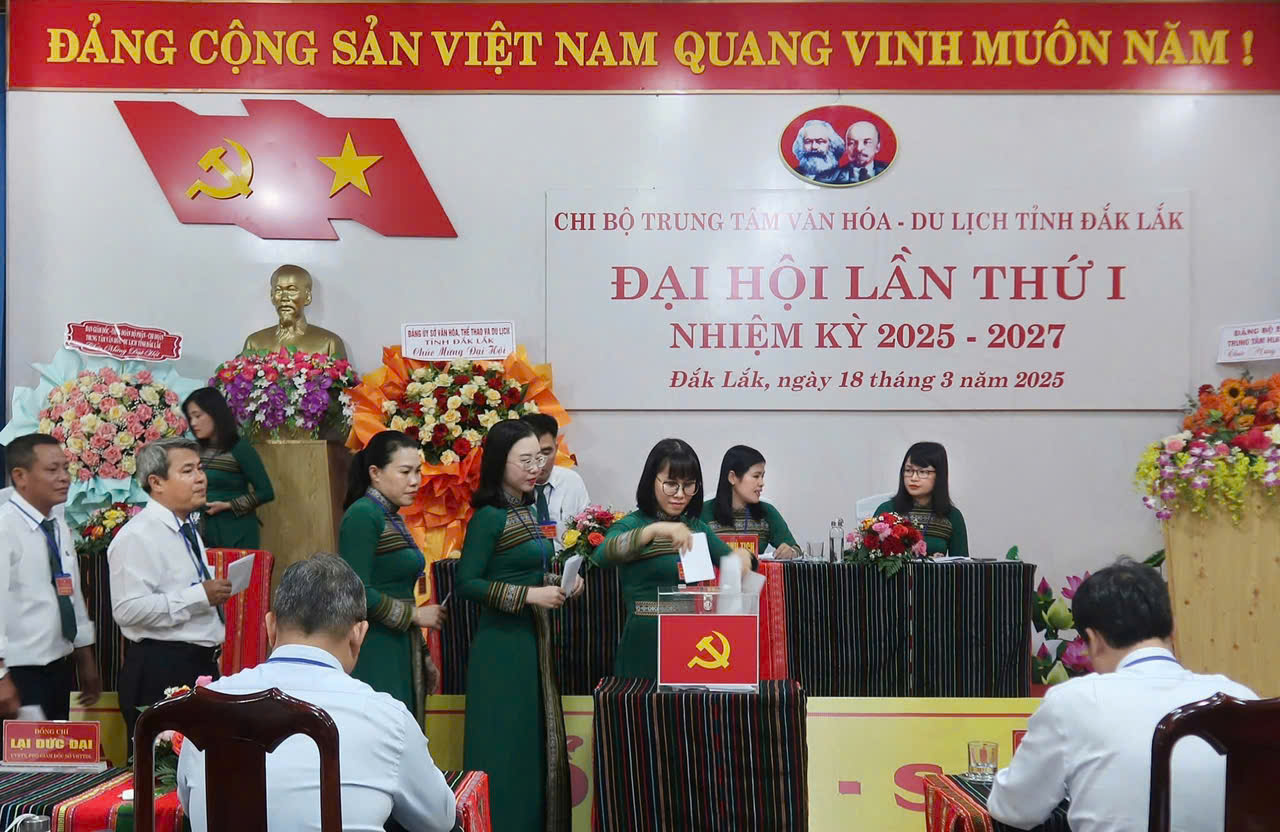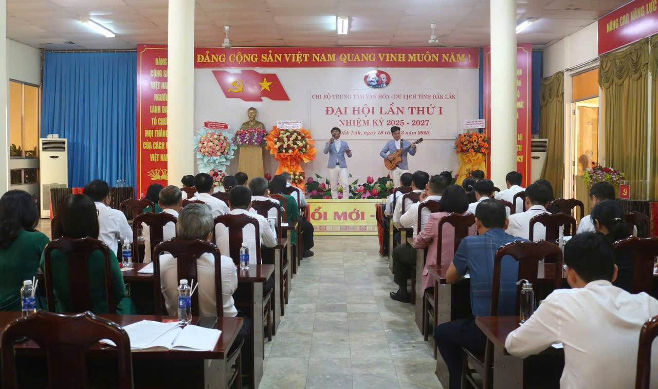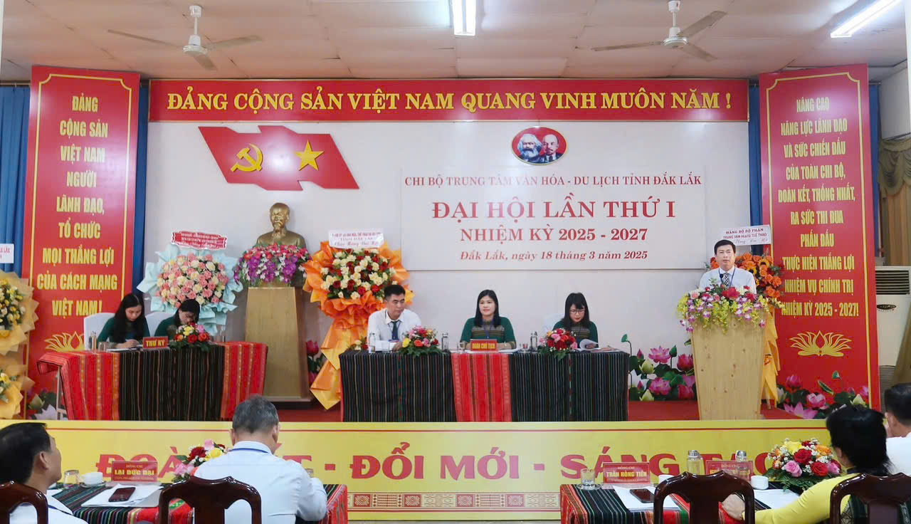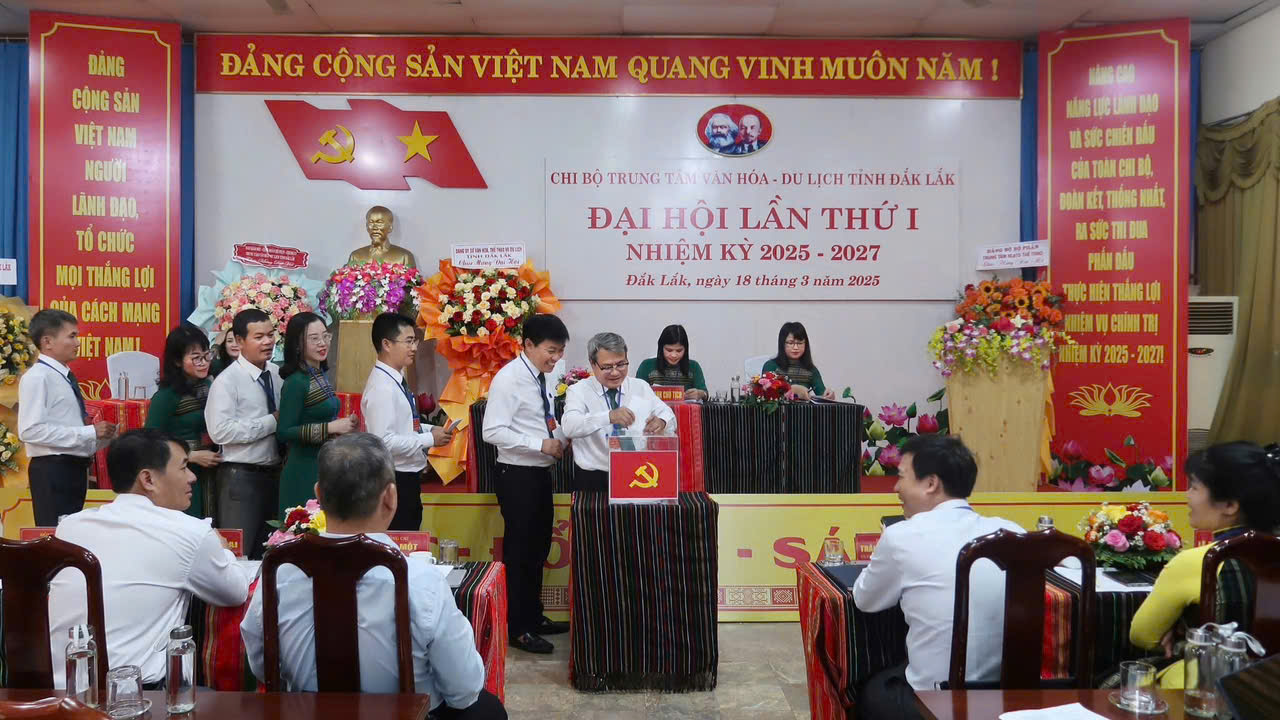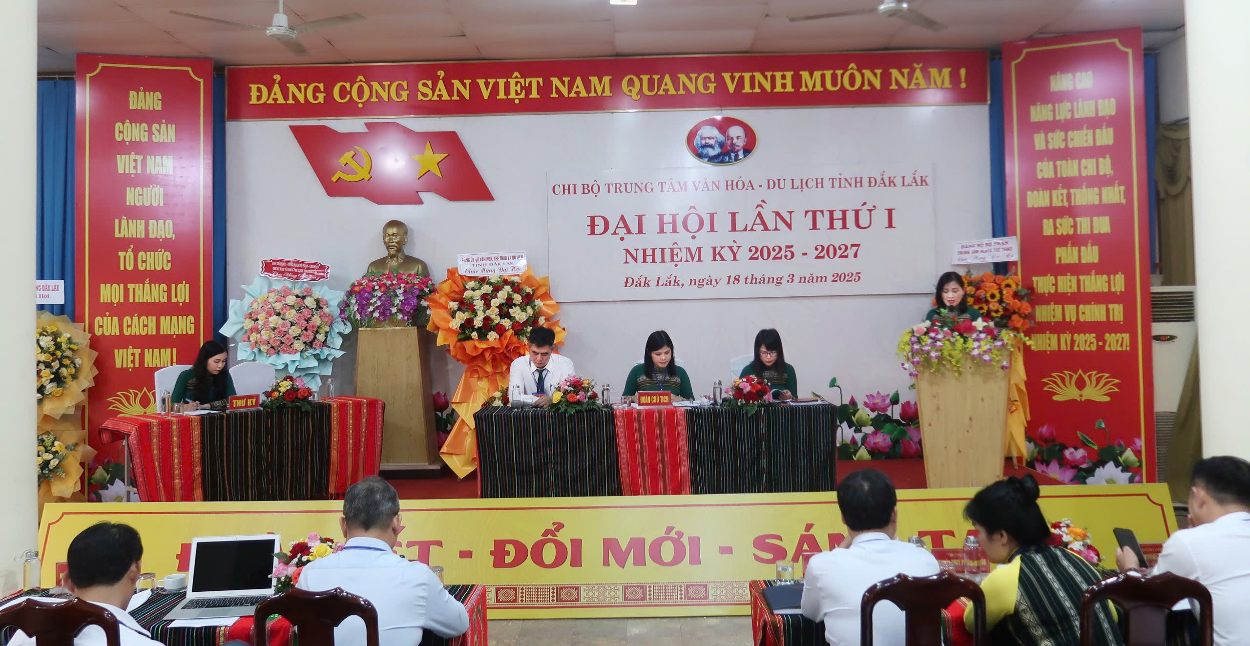 Chiều ngày 18/3/2025, Đại hội Chi bộ Trung tâm Văn hóa - Du lịch tỉnh Đắk Lắk lần thứ I, nhiệm kỳ 2025 - 2027 đã tổ chức thành công. Đây là Chi bộ được Đảng ủy Sở VHTTDL chọn làm đại hội điểm. Đến tham dự có các đồng chí: Trần Hồng Tiến, Tỉnh ủy viên, Bí thư Đảng ủy, Giám đốc Sở VHTTDL; Đinh Một, Phó Bí thư Đảng ủy Sở VHTTDL; Lại Đức Đại, Ủy viên BTV Đảng ủy, Phó Giám đốc Sở VHTTDL; Nguyễn Thụy Phương Hiếu, Ủy viên BTV Đảng ủy, Phó Giám đốc Sở VHTTDL; Lê Phúc Long, Ủy viên BTV Đảng ủy, Phó Giám đốc Sở VHTTDL; Nguyễn Quốc Hiệp, Phó Giám đốc Sở VHTTDL; các đồng chí Ủy viên Ban Chấp hành Đảng bộ Sở; Bí thư các Chi bộ thuộc Đảng bộ bộ phận Bảo tàng Đắk Lắk; Bí thư các Chi bộ thuộc Đảng bộ bộ phận Trung tâm Huấn luyện và Thi đấu Thể thao; Bí thư các Chi bộ trực thuộc Sở và 29 Đảng viên thuộc Chi bộ Trung tâm Văn hóa - Du lịch tỉnh Đắk Lắk.