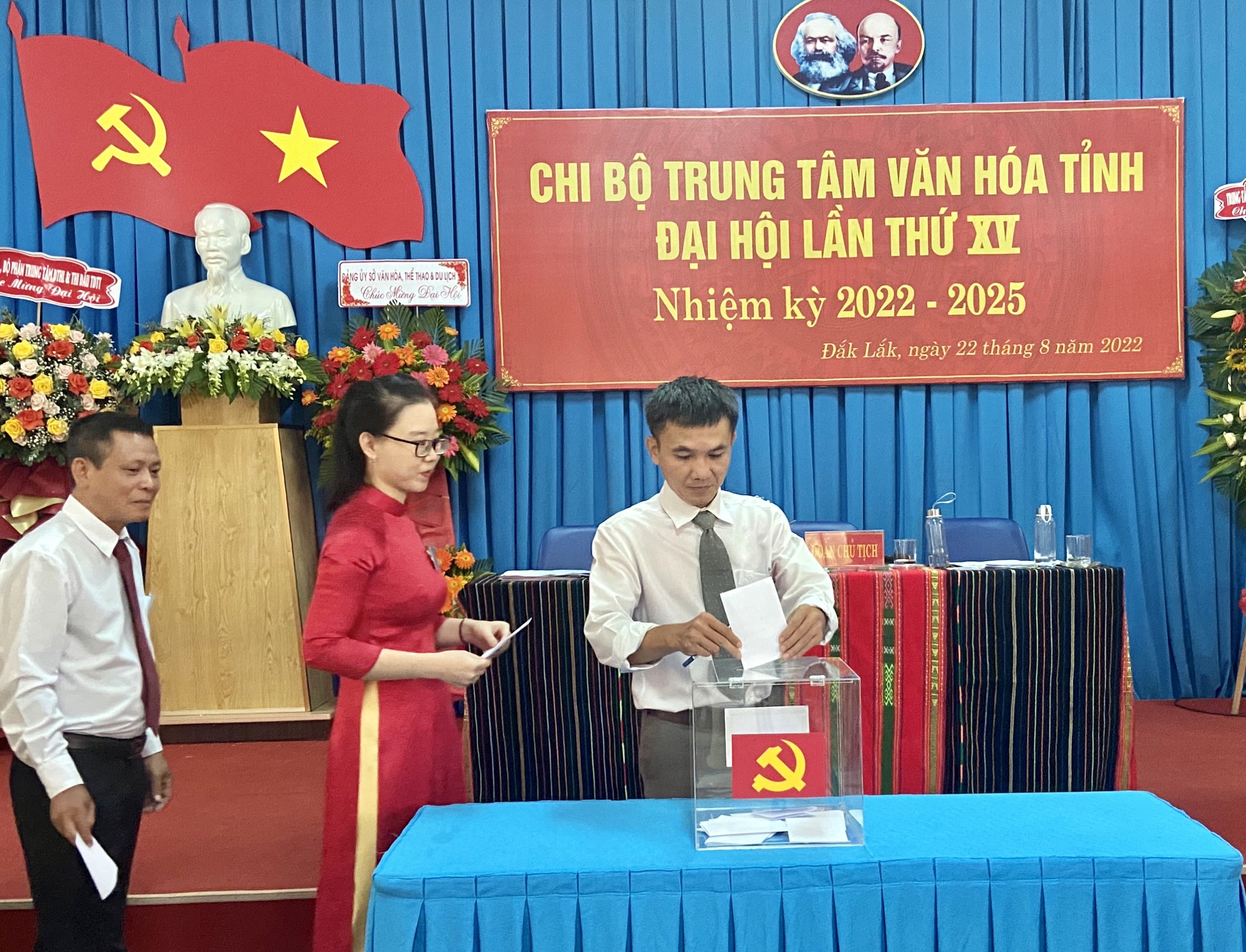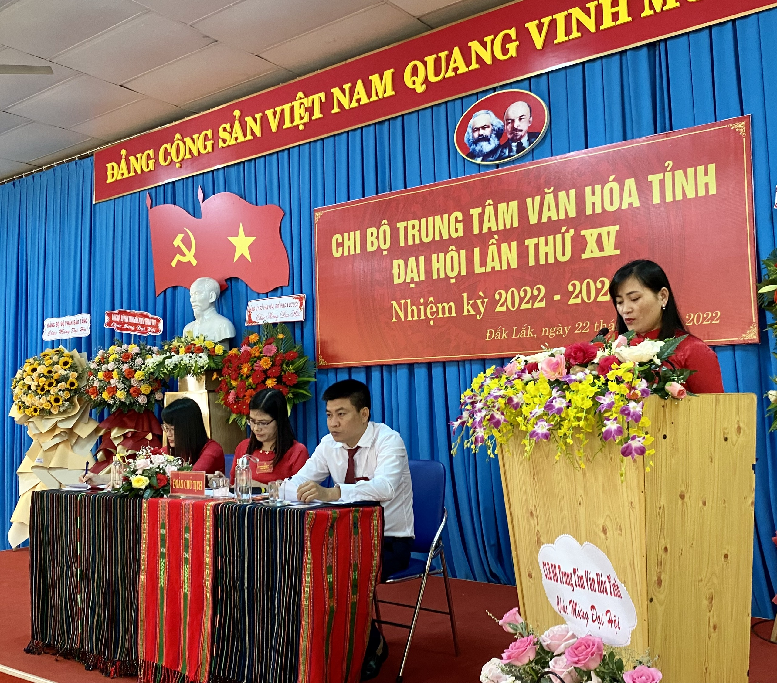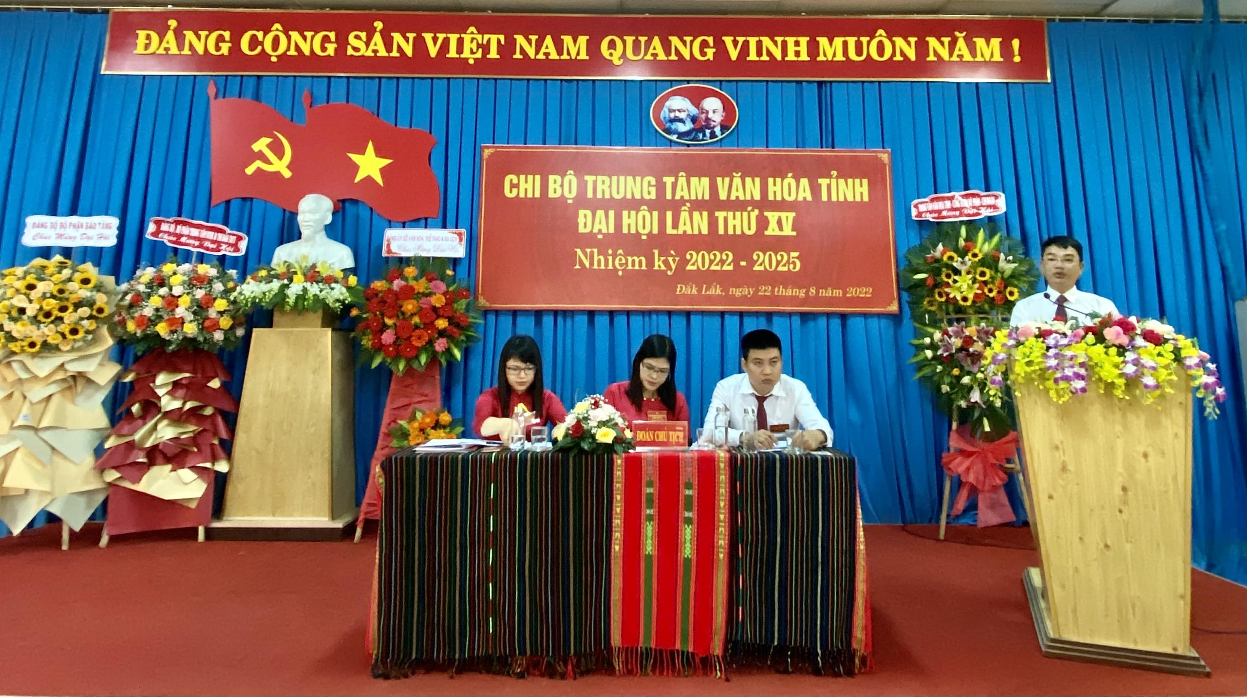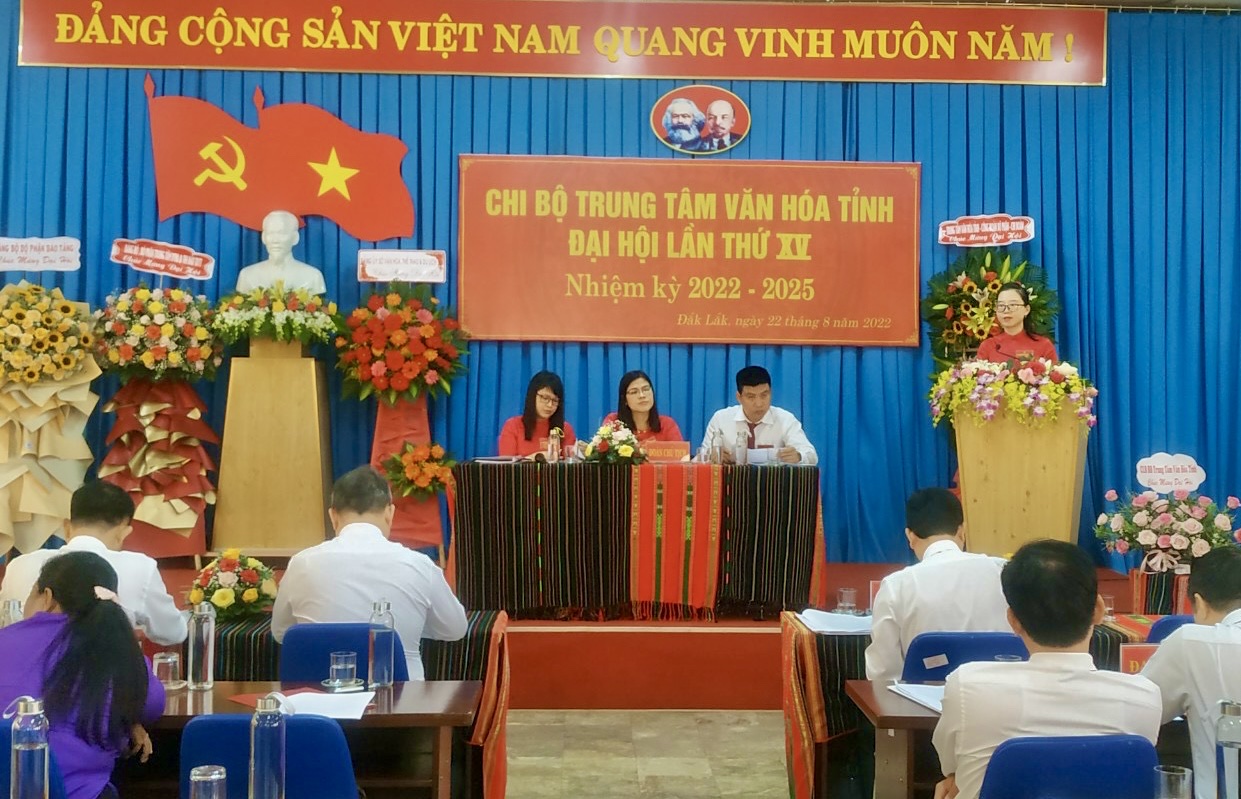Sáng ngày 22/8, Chi bộ Trung tâm Văn hóa tỉnh tổ chức Đại hội lần thứ XV, nhiệm kỳ 2022-2025. Đây là chi bộ được Đảng ủy Sở VHTTDL chọn làm đại hội điểm. Đến tham dự có các đồng chí: Đinh Một, Phó Bí thư Đảng ủy Sở VHTTDL; Đặng Gia Duẩn, Ủy viên BTV Đảng ủy, Phó Giám đốc Sở VHTTDL; Lê Phúc Long, Ủy viên BTV Đảng ủy, Phó Giám đốc Sở VHTTDL; các đồng chí Ủy viên Ban Chấp hành Đảng bộ Sở; Bí thư các Chi bộ thuộc Đảng bộ Bộ phận Bảo tàng Đắk Lắk; Bí thư các Chi bộ thuộc Đảng bộ Bộ phận Trung tâm Đào tạo, Huấn luyện và Thi đấu Thể dục Thể thao; Bí thư các Chi bộ trực thuộc Sở và 17 Đảng viên thuộc Chi bộ Trung tâm Văn hóa tỉnh.