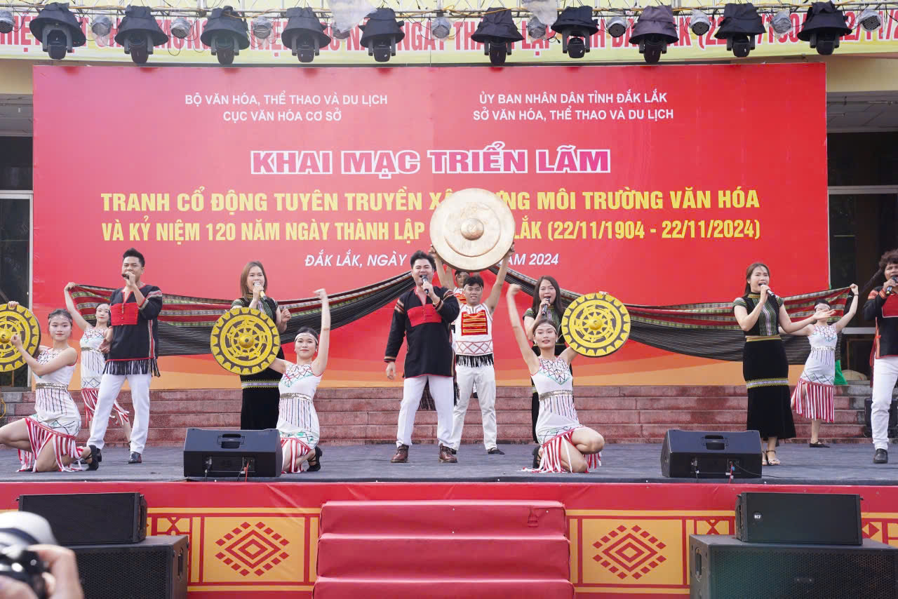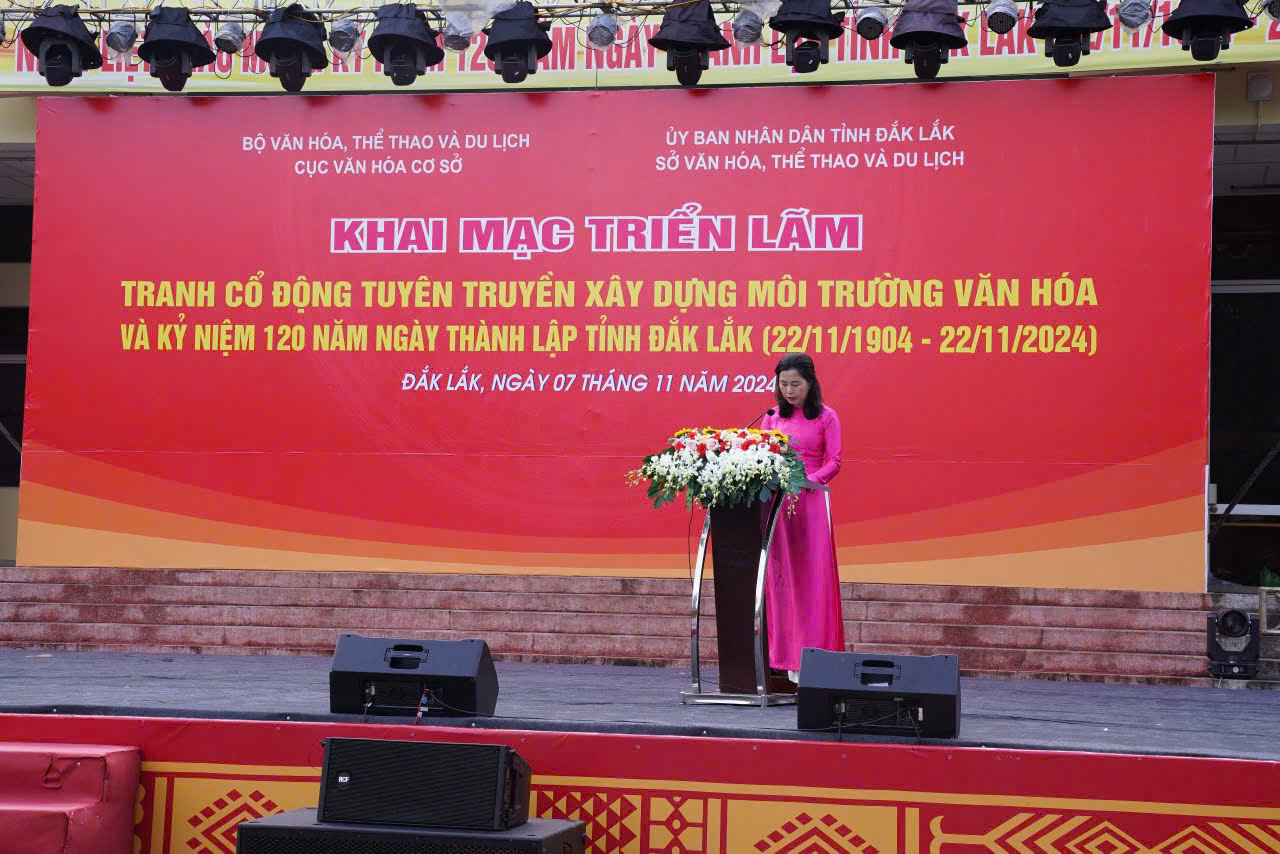Sáng 07/11, tại Trung tâm Văn hóa tỉnh, Cục Văn hóa cơ sở (Bộ Văn hóa, Thể thao và Du lịch) phối hợp với Sở Văn hóa và Thể thao tỉnh Đắk Lắk khai mạc Triển lãm tranh cổ động tuyên truyền về “Xây dựng môi trường văn hóa và chào mừng kỷ niệm 120 năm Ngày thành lập tỉnh Đắk Lắk (22/11/1904 - 22/11/2024)”.