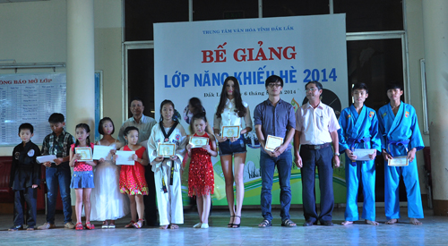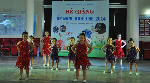 Trung tâm Văn hóa tỉnh vừa tổ chức Bế giảng lớp Năng khiếu hè năm 2014. Sau hơn hai tháng hè, Trung tâm đã mở được 11 lớp năng khiếu, gồm các lớp Organ, Trống, Piano, Violon, Guitar, Thanh nhạc, Múa thiếu nhi , Earobic, Mỹ thuật, Hội họa thiếu nhi và Người mẫu thời trang, thu hút trên 200 em học sinh tham gia.