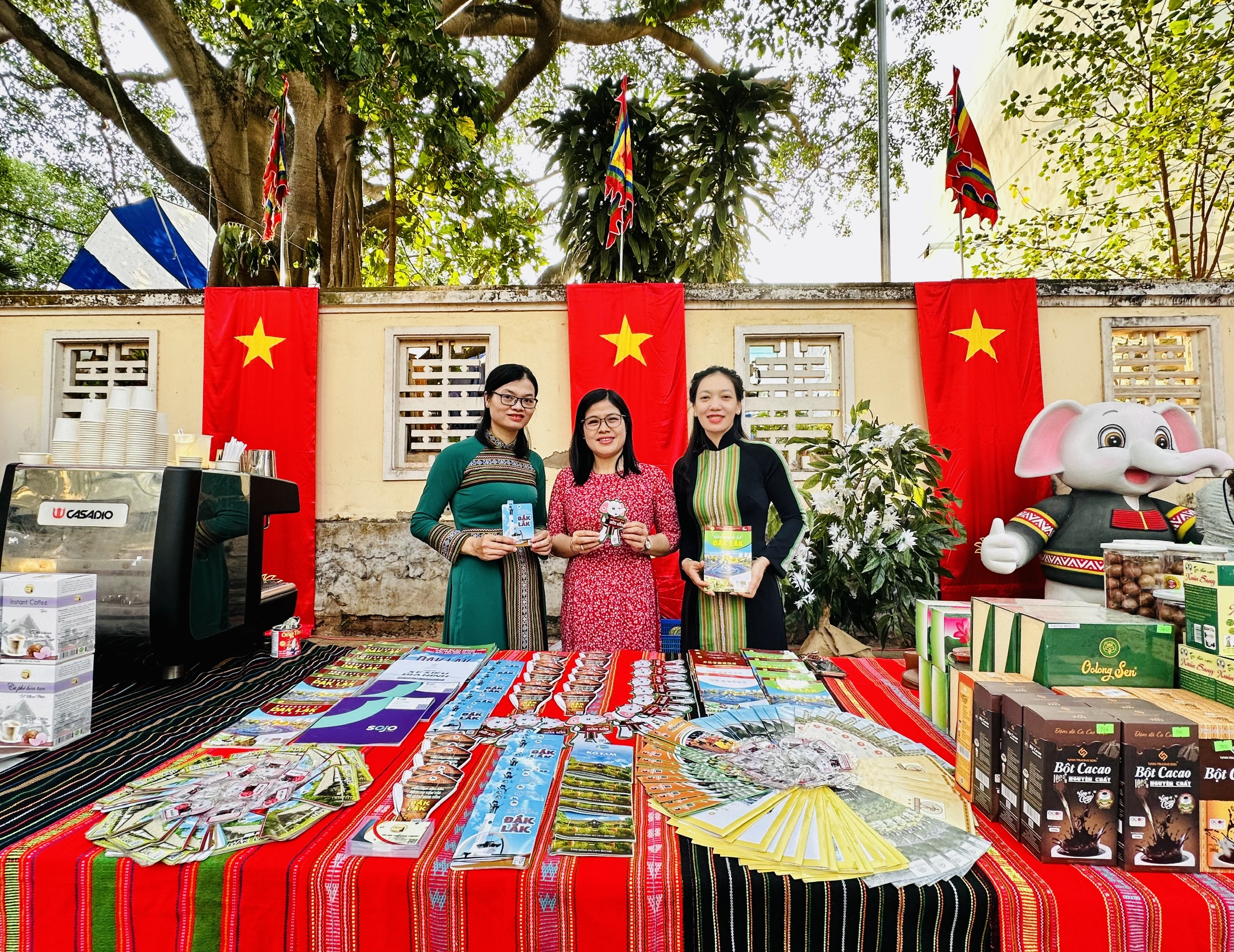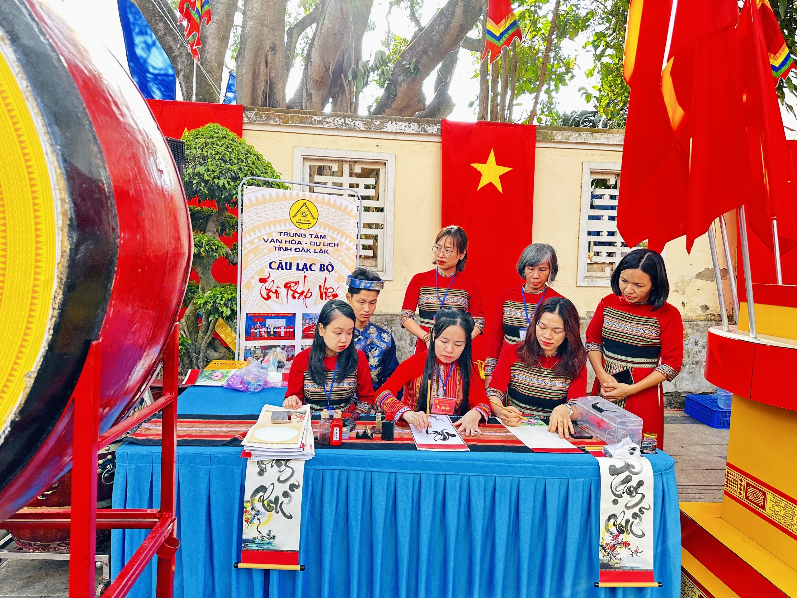 Gian hàng trưng bày các ấn phẩm du lịch và viết Thư pháp