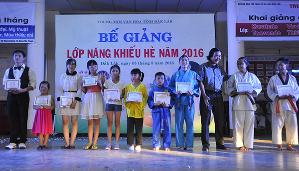 Thông qua các lớp năng khiếu, nhằm cung cấp những kiến thức cơ bản, trang bị cho các em những hiểu biết về các bộ môn nghệ thuật, định hướng và phát huy năng khiếu văn hóa nghệ thuật, tạo sân chơi đáp ứng nghỉ ngơi, vui chơi giải trí lành mạnh cho các em học viên trong dịp hè để chúng ta bước vào năm học mới đạt được nhiều kết quả cao. Nhân dịp này, Trung tâm văn hóa tỉnh đã trao Giấy chứng nhận cho 15 em có thành tích xuất sắc trong học tập năng khiếu hè 2016