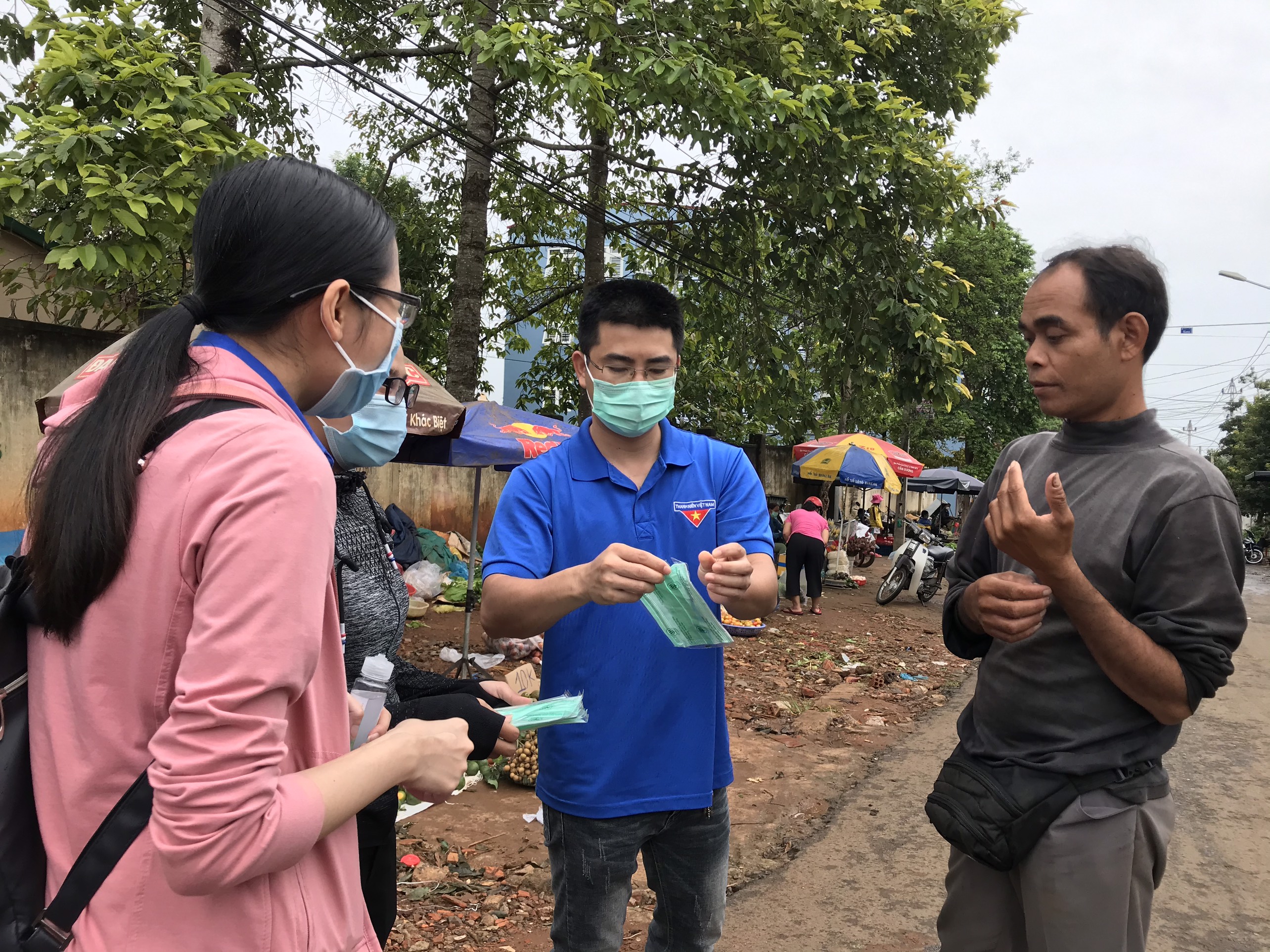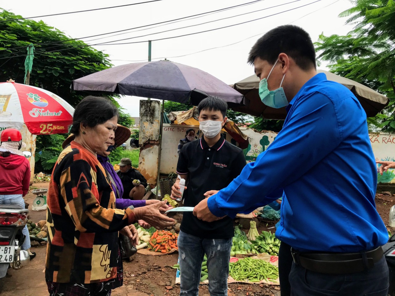 Ngoài tuyên truyền lưu động bằng xe Led Screen trên các tuyến đường, tại các điểm tập trung đông người; bên cạnh việc cấp phát khẩu trang miễn phí, lực lượng đoàn viên, thanh niên cũng trực tiếp tuyên truyền cho tiểu thương, người đi chợ về các nội dung phòng, chống dịch Covid-19. Chủ yếu là tuyên truyền, vận động và hướng dẫn cách đeo khẩu trang, rửa tay sát khuẩn đúng cách, hướng dẫn cài đặt ứng dụng Bluezone và khai báo y tế điện tử trên điện thoại thông minh. Bên cạnh đó, cũng vận động mọi người nên tuân thủ chấp hành quy định phòng, chống dịch, đeo khẩu trang nơi công cộng để bảo vệ bản thân, gia đình và cộng đồng...Với một số người dân không đeo khẩu trang, các bạn đã hướng dẫn cách đeo khẩu trang ngay tại chỗ và tuyên truyền về ý nghĩa của việc đeo khẩu trang trong phòng, chống dịch bệnh. Đa số người dân đồng tình và chia sẻ: “Trời thì mưa mà các cháu vẫn tích cực đi tuyên truyền vận động cũng như phát khẩu trang thế này, các cô chú rất cảm ơn. Hi vọng, các cháu tiếp tục triển khai nhiều hoạt động như thế để nhiều người như chúng tôi hiểu hơn về dịch bệnh, từ đó biết cách tự phòng tránh cho bản thân”.