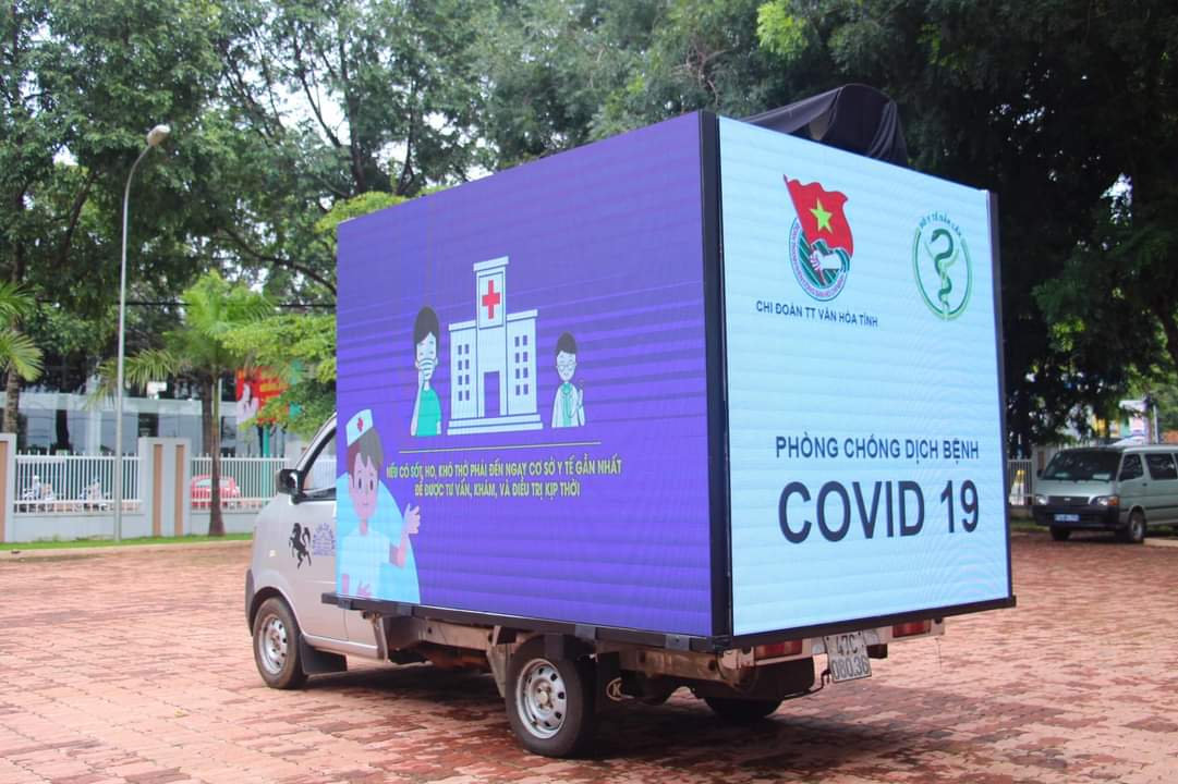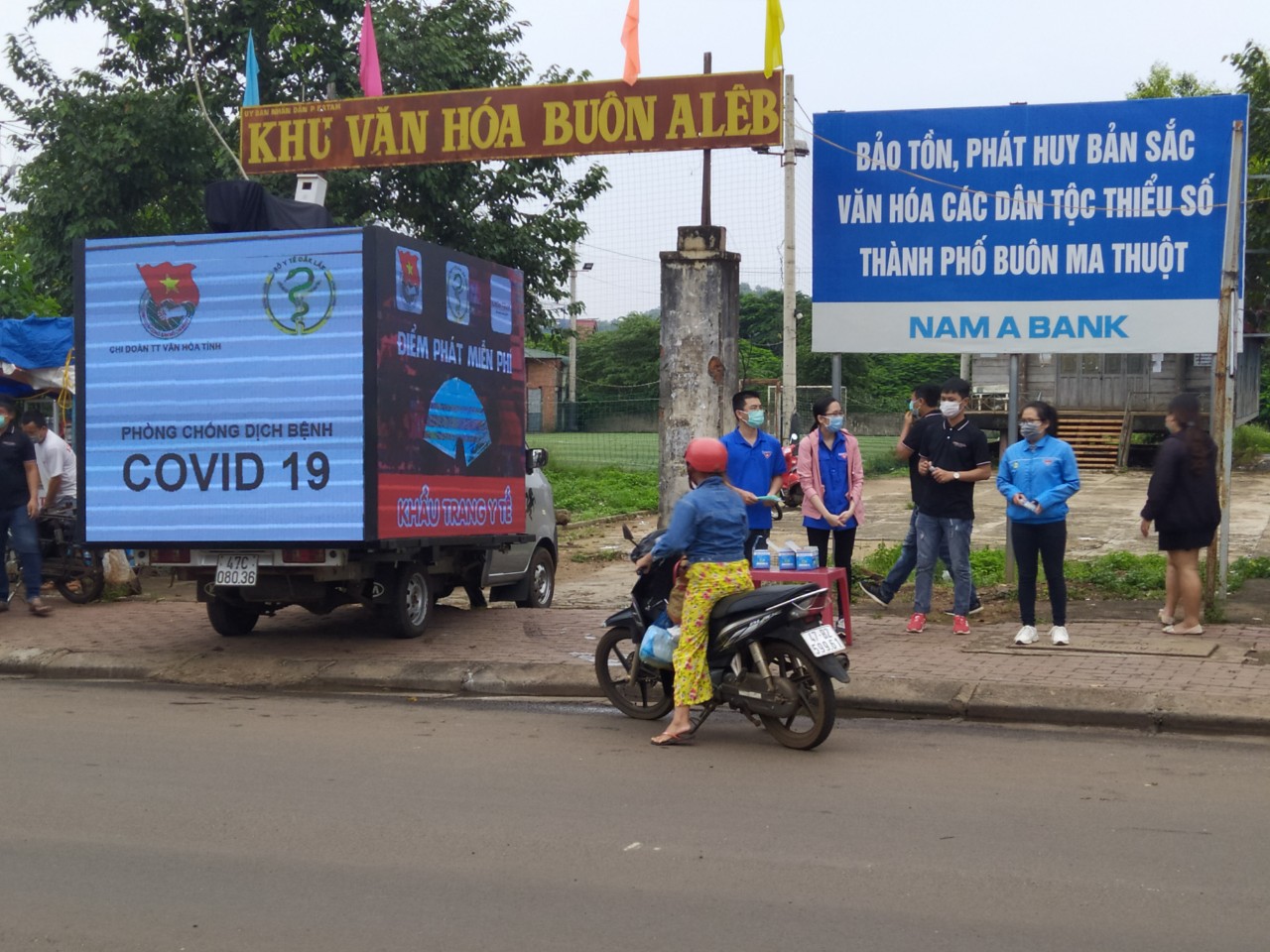 Trong tình hình dịch bệnh Covid-19 đang diễn biến hết sức phức tạp như hiện nay, nhiều giải pháp phòng, chống, ngăn ngừa dịch bệnh lây lan đã được triển khai từ trung ương đến địa phương. Tuy vậy, không phải ai cũng hiểu rõ về Covid-19 cũng như có biện pháp để tự bảo vệ bản thân, gia đình và cộng đồng. Phát huy sức trẻ, cùng chung tay đẩy lùi dịch bệnh Covid-19, Chi đoàn Trung tâm Văn hóa tỉnh đã phối hợp với Công ty TNHH MTV Khoa Trần, Tỉnh đoàn Đắk Lắk, Sở Y Tế Đắk Lắk triển khai chương trình tuyên truyền phòng, chống dịch bệnh Covid-19 bằng xe Led Screen tại thành phố Buôn Ma Thuột, thị xã Buôn Hồ và các huyện: Krông Pắc, Cư M’gar từ ngày 20/8 - 24/8/2020. Song song với đó là hoạt động cấp phát khẩu trang miễn phí cho người dân tại một số điểm trên địa bàn tỉnh.
